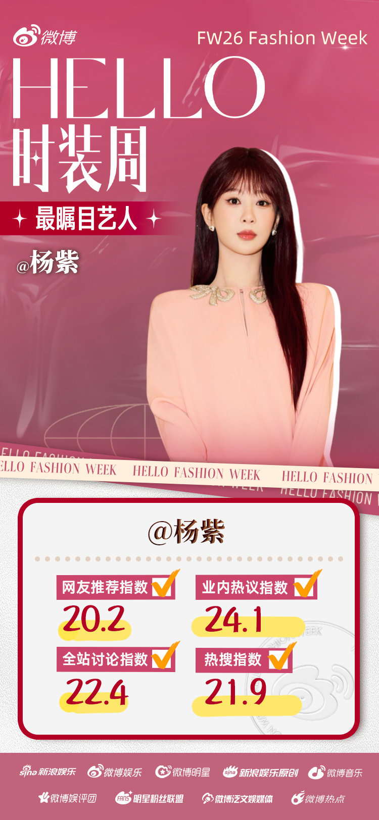 2026秋冬季国际时装周最受关注艺人TOP 3
