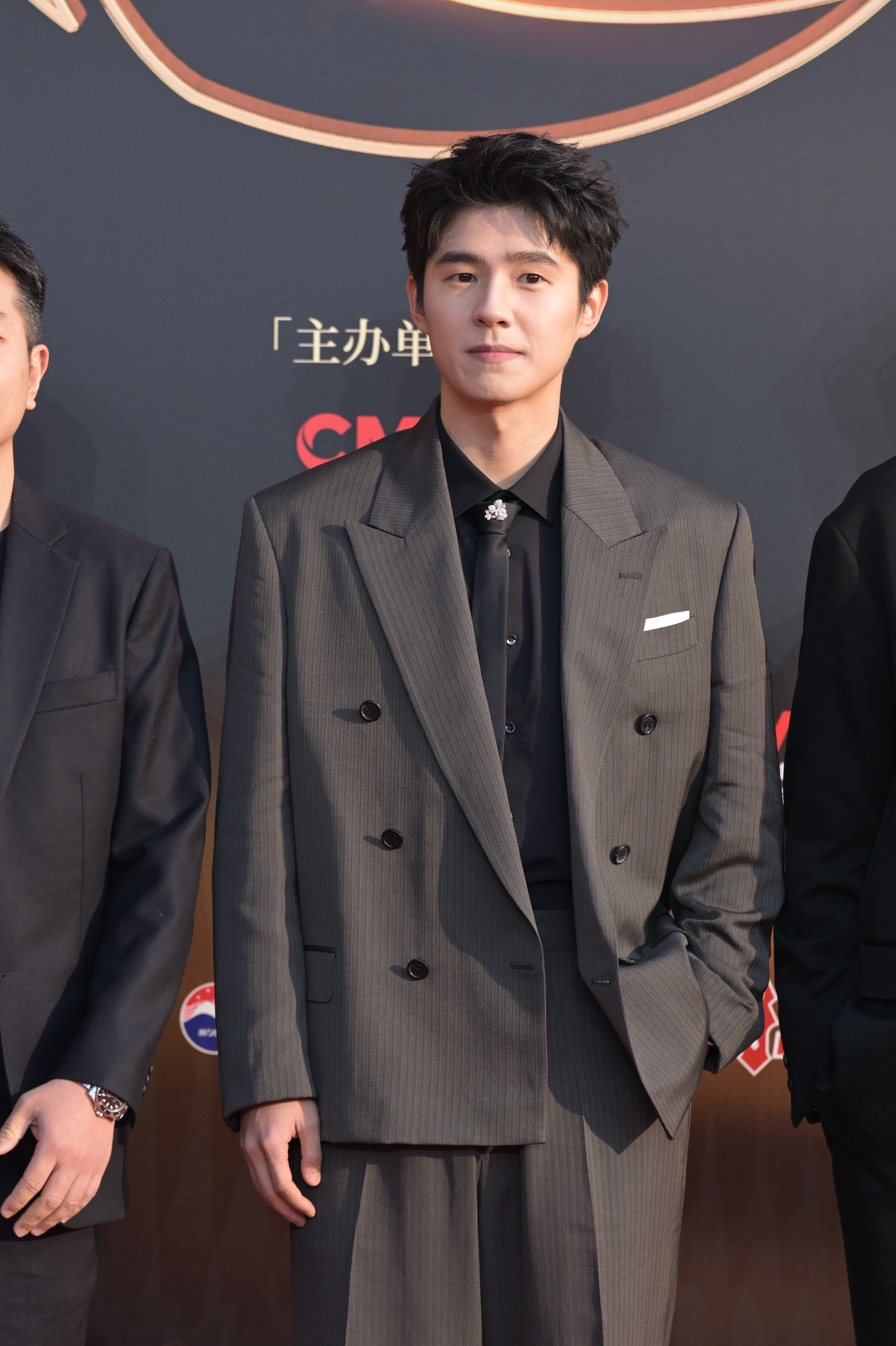 刘昊然CMG红毯造型生图刘昊然深灰条纹西装 深灰条纹西装亮相CMG红毯~