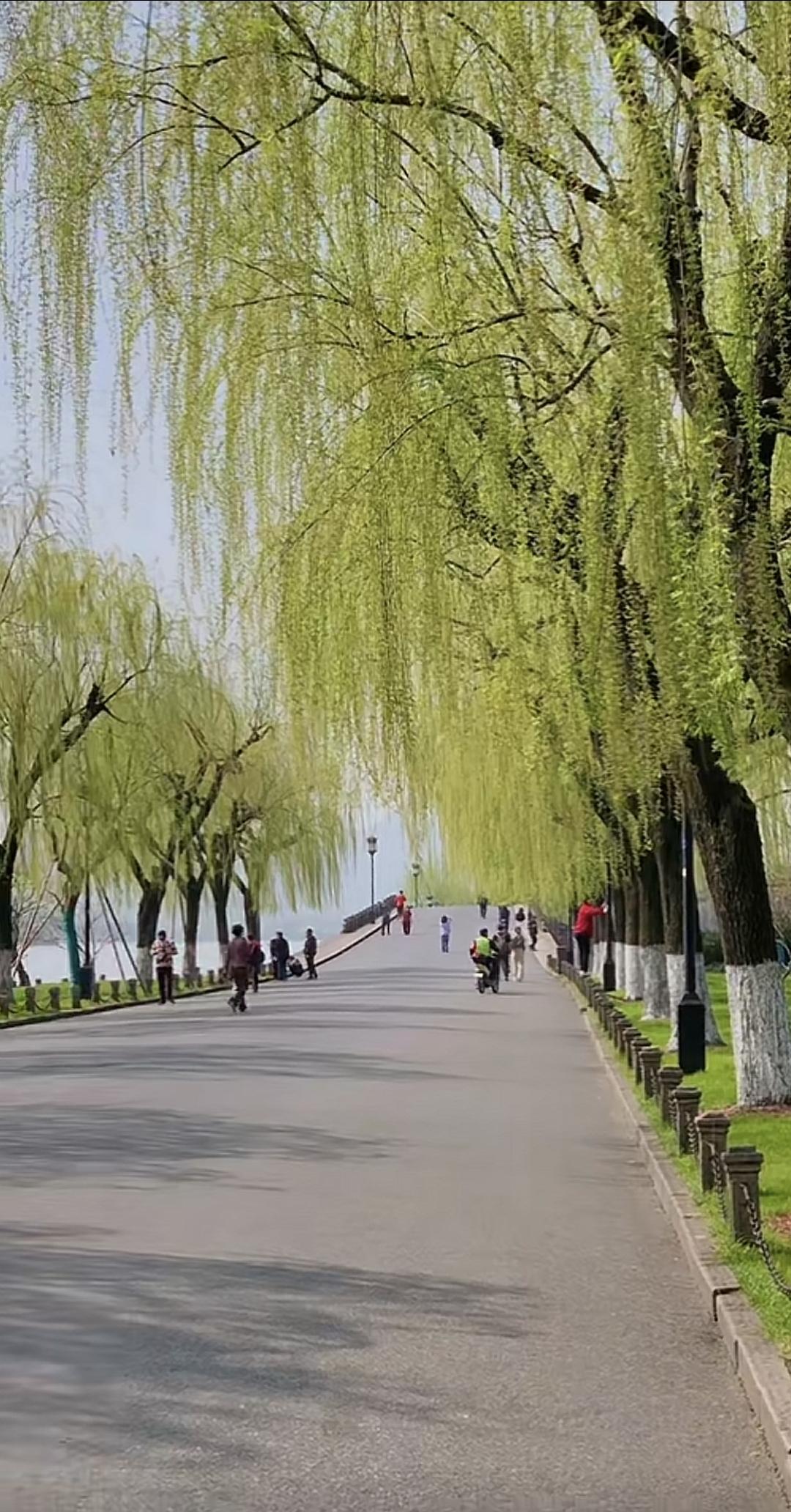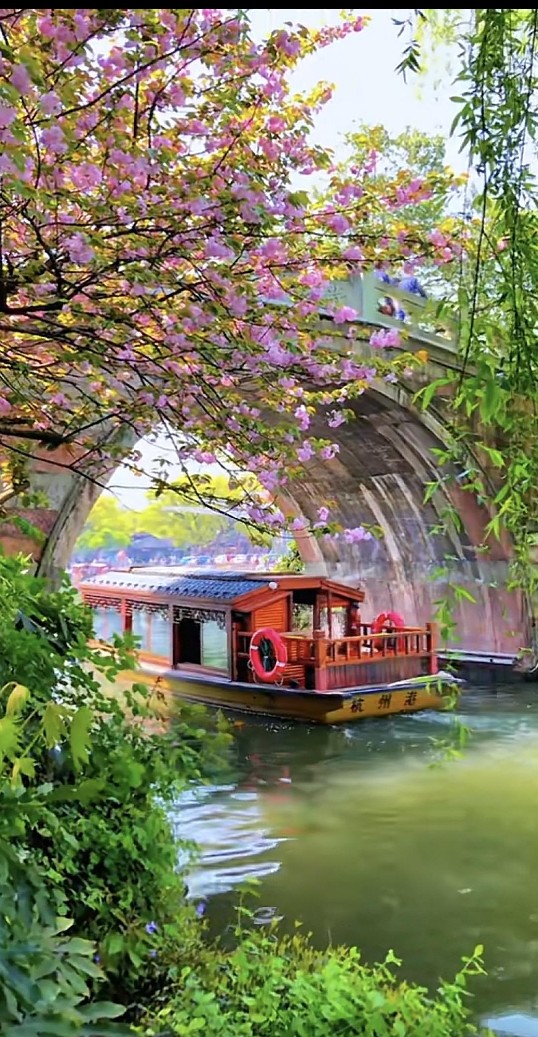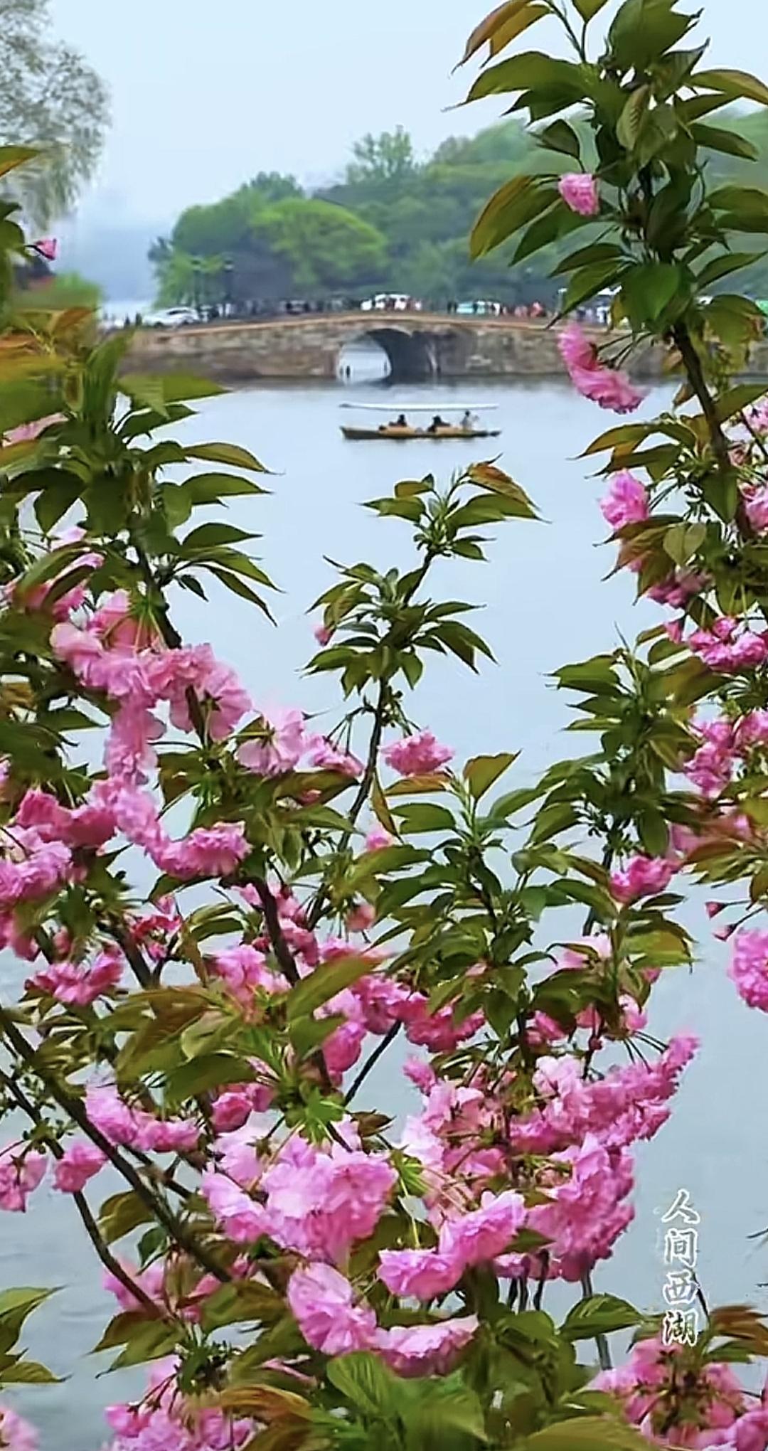 西湖美景三月天,春雨如酒柳如烟,有缘千里来相会,无缘对面手难牵,十年修得同船渡,