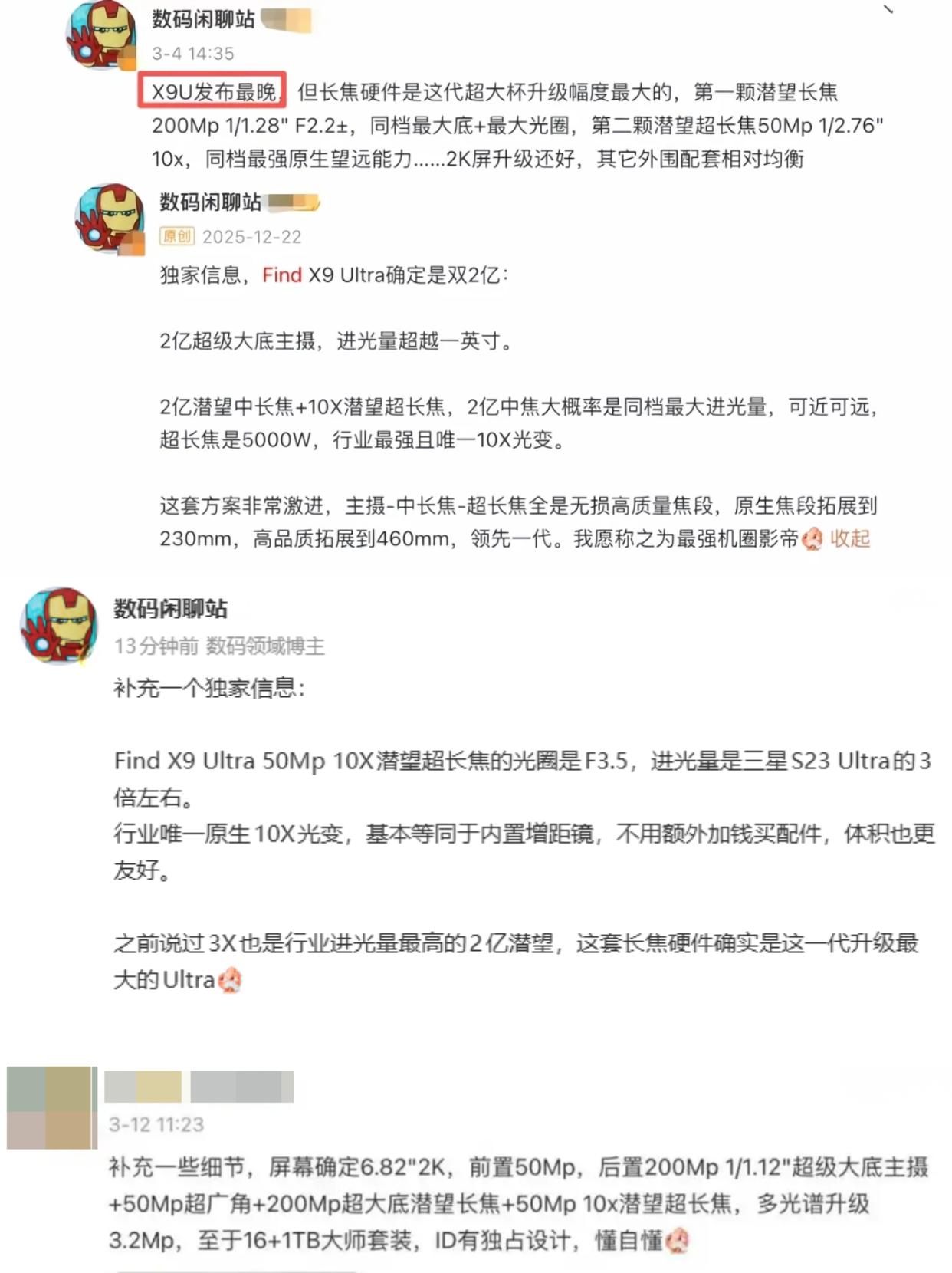 风驰版Mate80PM来了,Pura90U和Find X9U也在路上 谁能想到华为居然会在Mate系列上用上散热风扇?🤯金属机身+大风扇,出风口和Deco结合有点意思,是要直接榨干麒麟9030 Pro的性能? 目前风驰版的Mate80 Pro Max开启预订!但也别着急,接下来要登场的旗舰也巨多,月底有X300 Ultra,下个月还有Pura90Ultra、Find X9 Ultra,有得挑了! 华为Pura90Ultra爆料称会有1英寸可变光圈主摄 + 2亿潜望长焦,网传还有连续光变,再等等看爆料,目前关于它的爆料还是比较少的~ OPPO Find X9 Ultra的爆料就比较多了,影像堆料方面可以说相当的豪华: ✅2亿超级大底主摄,进光量超越一英寸 ✅2亿超大底潜望长焦,大概率同档zui大进光量 ✅5000万 10X光变潜望超长焦+哈苏巨炮增距镜 值得一提的是,数码闲聊站说到:Find X9U是行业唯yi原生10X光变,基本等同于内置增距镜,不用额外加钱买配件。而且10X长焦镜头的进光量是S23 Ultra的3倍,影像优势明显,可以等它看看 华为Mate80风驰版 OPPOFindX9Ultra 华为Pura90Ultra 旗舰手机 数码圈 影像旗舰 麒麟9030Pro 2亿像素