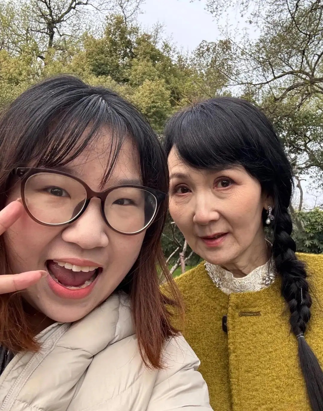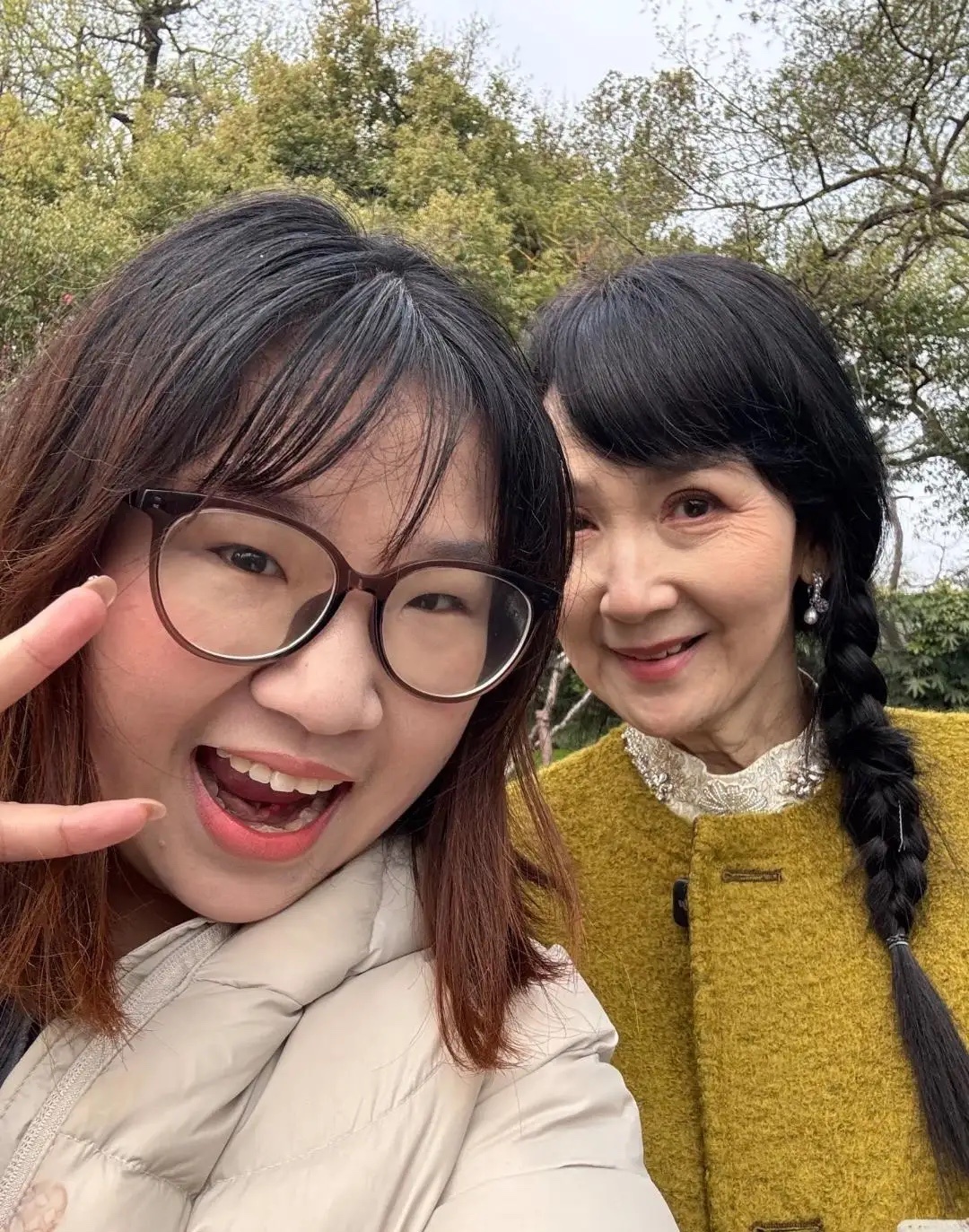 陈美琪在杭州西湖被偶遇,她扎着麻花辫,化着精致的妆容,打扮像少女。但脸部和脖子的皱纹暴露了真实年龄,皮肉松弛了,眼窝凹陷,苍老感好重,自然美自然老去。