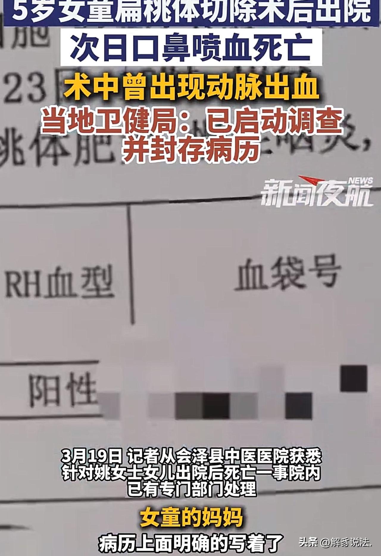 云南曲靖,5岁女童在某医院做扁桃体切除术,医生告知1个小时就能完成,结果,将近5个小时后才被推出手术室。女童4天后出院,次日,出现口鼻喷血的情况,不幸的是,到医院了抢救无效死亡。事后,其母亲在查看病例时发现惊雷真相,原来,女童在手术中出现扁桃体下极动脉波动性出血,出血量350毫升,医院还紧急输血300毫升。母亲暴怒,决定走法律程序,为女儿讨回公道。 5岁的女儿是姚女士夫妻俩捧在手心里长大的宝,含在嘴里怕化了,捧在手里怕摔着。 她怎么也不敢相信,一场普普通通的扁桃体切除手术,竟夺走女儿的生命,永远的定格在了5岁。 姚女士悲痛欲绝,无法接受女儿离开的事实,满脑子都是女儿活蹦乱跳的模样。 她看着女儿的照片,泪流不止,心里又疼又悔。 她告诉自己,必须坚强起来,女儿走得不明不白,要查清真相,为女儿讨一个公道。 今年1月23日,女儿莫名出现嗓子不舒服的情况,姚女士特别担心,不敢耽搁,赶紧放下手头的事,带女儿来到会泽县中医医院做检查,检查后医生告知扁桃体肥大,需要做扁桃体切除手术。 姚女士一听,要手术,一颗心瞬间提到嗓子眼里,医生安慰她说:就是个小手术,一两个小时就能结束。她这才稍微放下心来。 女儿很快被安排进了手术室,她在手术室外焦急地等着,坐立难安,默默祈祷女儿手术顺利。 可时间一分一秒地过去,眼看着一个多小时过去了,女儿还没有被推出手术室。 姚女士越来越慌,再也镇定不下来,心就像在热锅上煎熬一样,坐立难安、万分焦急。 就这样苦苦等待,将近五个小时,女儿才终于被推出了手术室。 她赶紧询问医生情况,医生却只是轻描淡写地回应说手术很顺利,她还想再问什么,医生就忙去了。 术后第三天,女儿出现流鼻血的情况,她焦急地询问医生,可医生只让继续观察,没有做任何检查。 术后第四天,医院告知孩子符合出院标准,尽管心里一直不踏实,她还是选择相信医生的判断,带着女儿回了家。 1月28日下午,悲剧突然降临。 孩子吃了点粥和馄饨皮后,突然口鼻大量喷血,姚女士吓得魂都快没了,抱着孩子就往卫生院赶。 短短4分钟,孩子出血量就达到1000毫升,送到医院时已经没有了生命体征。 最终尸检结果显示,孩子是术后扁桃体创面大出血,导致急性失血性休克死亡。 女儿离世后,姚女士强忍悲痛调取病历,这才发现了惊天真相:手术中孩子出现扁桃体下极动脉波动性出血,出血量350毫升,医院还紧急输血300毫升,可这一切医院自始至终都瞒着她。 法医解剖还发现,病历上写着血管已结扎缝合,却找不到对应的动脉血管,这让她确定医院术中止血不彻底,存在严重操作失误。 得知真相的姚女士悲痛又愤怒,决定追究医院和相关医生的责任,提起民事诉讼,无论过程多艰难,都要为死去的女儿讨回公道,告慰孩子的在天之灵。 3月19日,涉事医院表示会专人处理,当地卫健部门也已介入调查,封存病历并进行责任鉴定。 此事曝光后,网友们纷纷留言讨论。 有网友分享经验:小孩小时候扁桃体大是正常的,别轻易听医生的摘除。我儿子小时候发炎偏大,医生建议摘除,我老公没同意,儿子现在20多了,啥问题都没有,也不怎么感冒。 还有网友感慨:看到这样的事太心痛了,就像刀扎一样。我身边几个孩子都做过这个手术,想想都后怕。也忍不住想,是医疗水平进步了才让扁桃体肥大手术变多吗?以前怎么没听说过? 也有网友义愤填膺,认为应该追究相关人员的刑事责任。 从法律角度来看,《刑法》第335条规定,医务人员由于严重不负责任,造成就诊人死亡或者严重损害就诊人身体健康的,处三年以下有期徒刑或者拘役。 构成医疗事故罪,需同时满足三个核心要件:一是主体为执业医务人员; 二是主观为重大过失,而非故意; 三是客观存在“严重不负责任”的行为,且造成死亡等重大损害后果。 这里的“严重不负责任”,指的是严重违反诊疗规范和常规,并非一般的技术失误。 本案中,医院术中动脉出血止血不彻底、病历记载与解剖事实不符、术后未充分告知风险还仓促出院,这些行为是否属于“严重不负责任”,还需专业鉴定认定。 若鉴定确认这些违规行为与孩子的死亡有直接因果关系,才可能符合医疗事故罪的构成要件。 但刑事追责的启动,通常需先走民事、行政程序,最终需以鉴定结果和相关部门的调查结论为准。