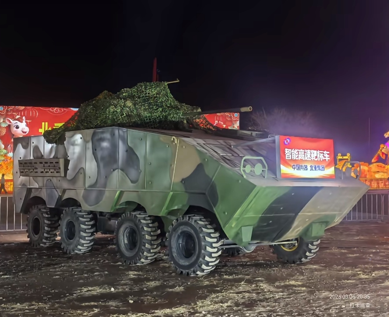 刚刚在XHS上刷到的,北重集团今年元宵灯会上展出的智能高速靶标车(对岸的海玛斯和