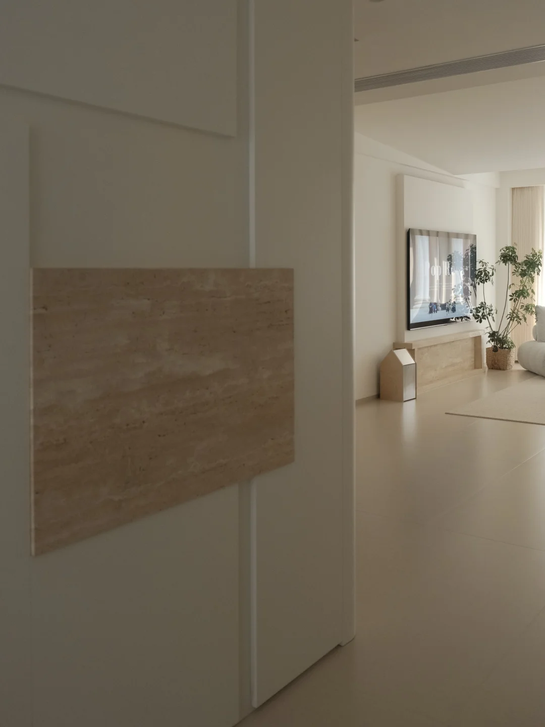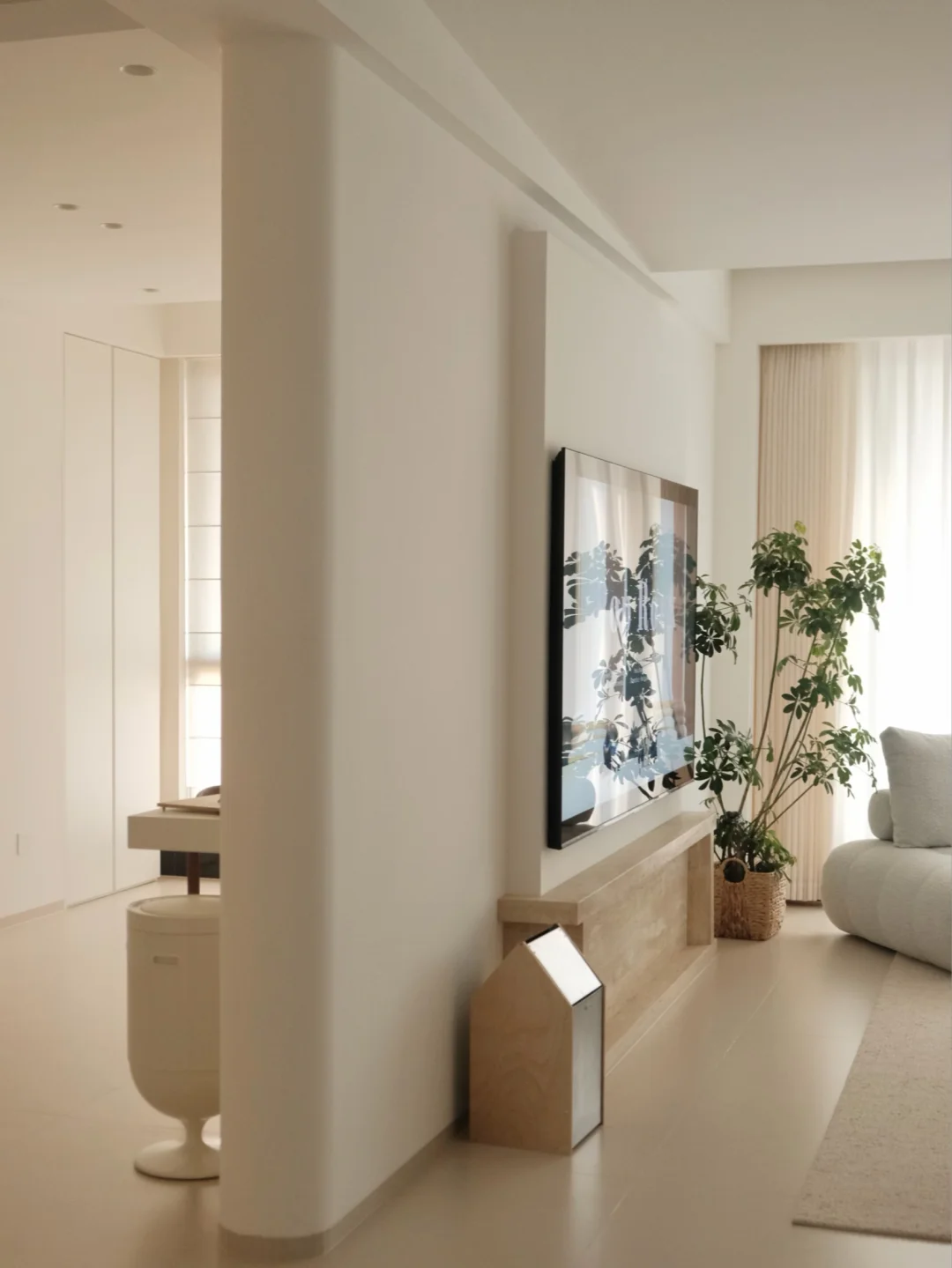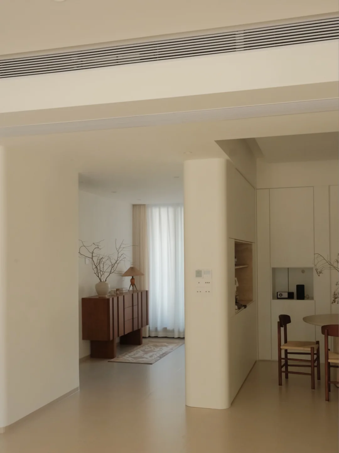圆弧的墙体 不规则的吊顶 嵌入式的踢脚线