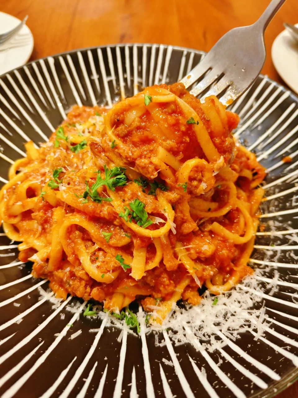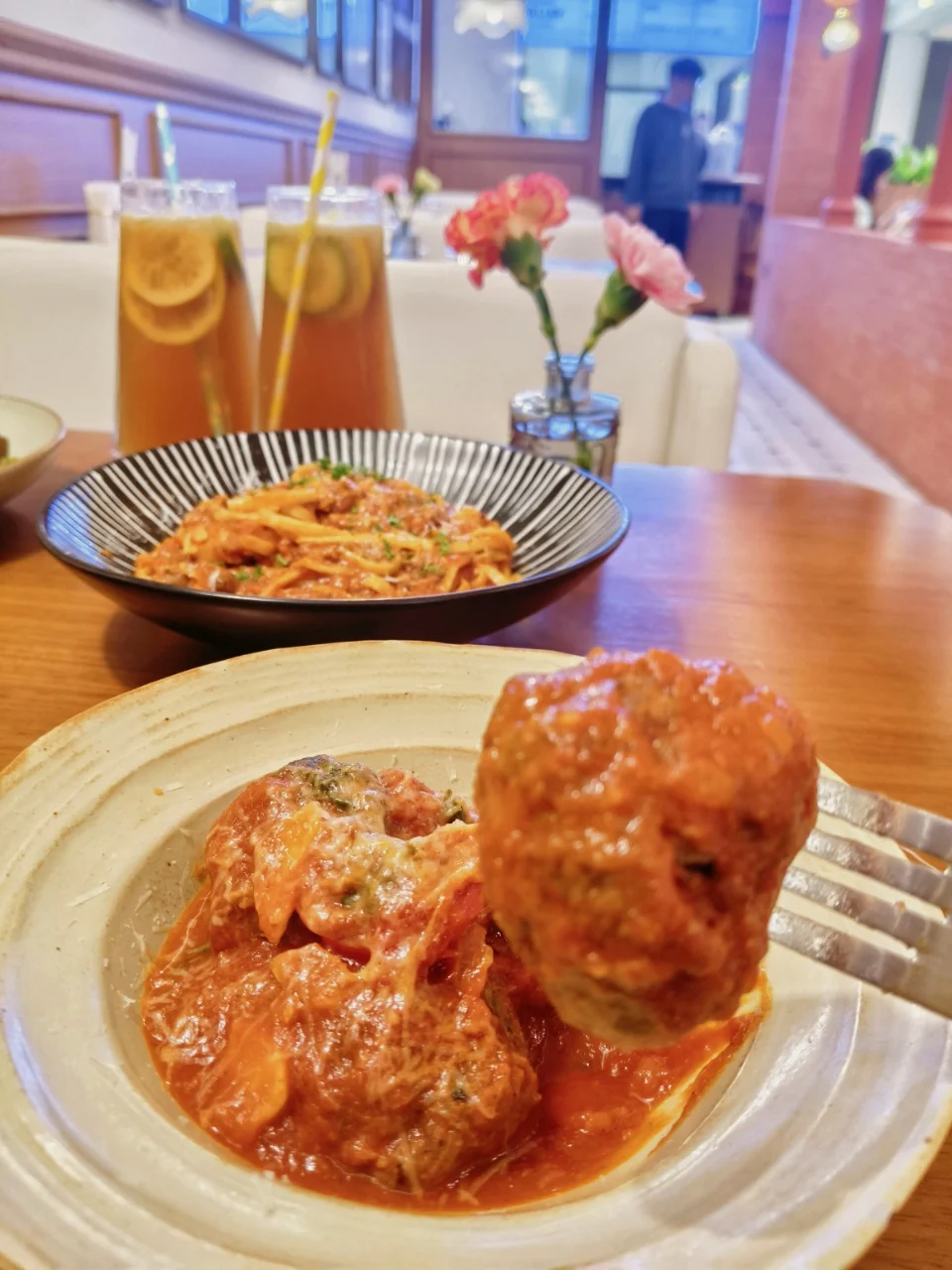 一盘三颗硕大圆润的肉丸,一口下去柔软多汁,逢松感,和着一种特制的番茄味酱汁,感受到意大利深厚的饮食文化