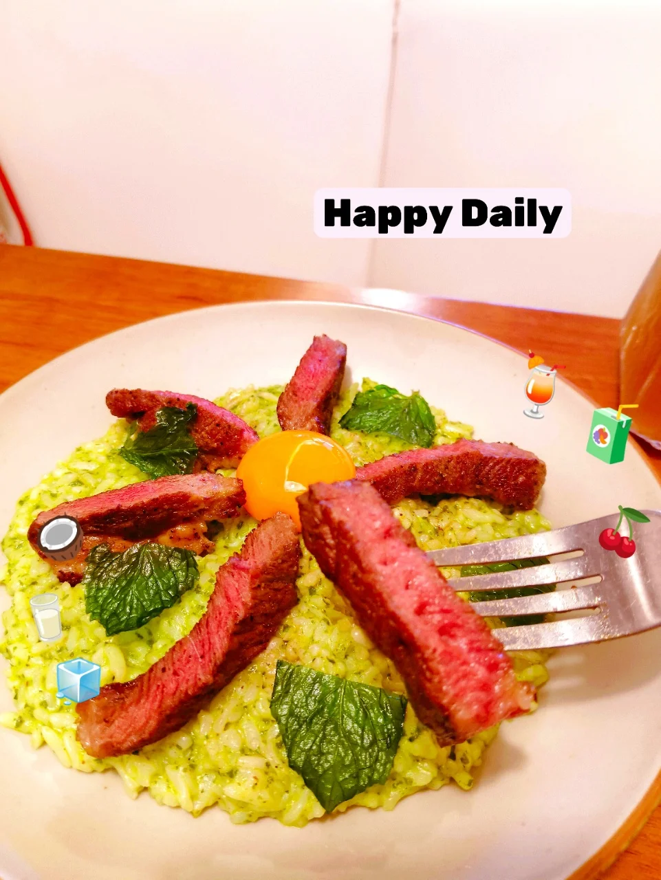 第一次吃这种意式街头美食,烩饭可选夹生的或全熟的,青酱原来挺好吃的,配上焦香的牛排,看似简单,但令人回味无穷