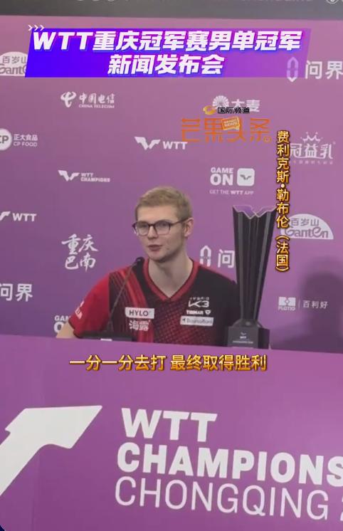 F·勒布伦:“我的水平一站比一站提升,这太赞了。” F·勒布伦拿到重庆冠军赛的男单冠军后,回到法国后也接受了采访,在采访中小布说:“我们在体能上花了很多功夫,现在开始见效了。我能更好地应对长盘对决,恢复也更快。这在重庆这样的赛事里至关重要,我连续打了两场七局大战。”确实在重庆打比赛,小布24小时打了三场比赛,两场是打满七局,一场打了五局,体力确实好,所以体能训练对运动员也非常的重要,看了小布打球,决赛后还很有活力,年轻就是好啊,不过背后也付出了很多的努力。 现在的小布对未来的比赛更有信心了,对于接下来的澳门世界杯,小布说::“我会带着同样的信心和野心去参赛,我想延续现在的势头。”回到法国后,小布还把他的重庆冠军赛冠军奖杯带到了体育馆里让大家看,还去参加了法甲联赛,采访结束后,小布就又重新回到训练中了。 确实现在外协选手都在进步,小布才19岁,以前的他打球容易有情绪,现在小布的情绪稳定了很多,而且看他打比赛的时候反应特别快,本来他打球就快,小布的成长是大家都看得到的,也是国乒重点研究对象,而且小布还是直板。