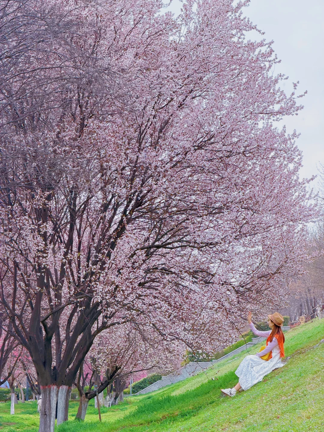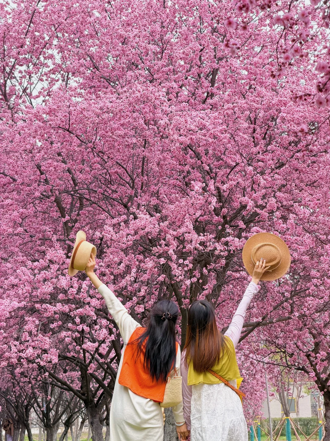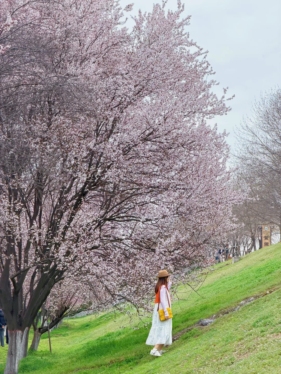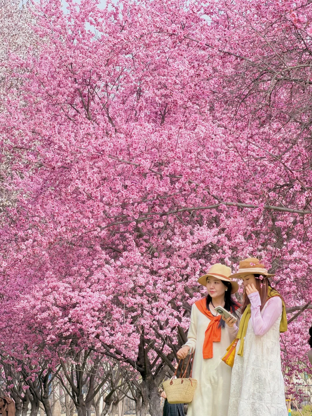 靠南边有一排紫叶李一排梅花交错在一起,用5倍焦距,人站远大概10米左右拍。可以拍出满屏花很美!