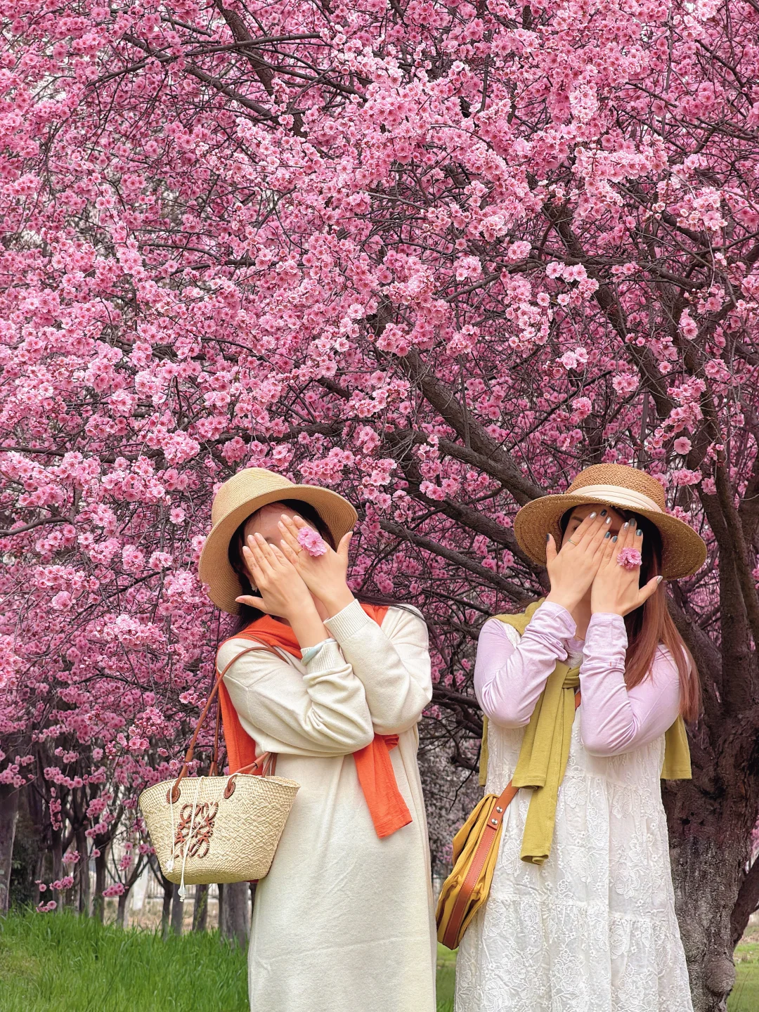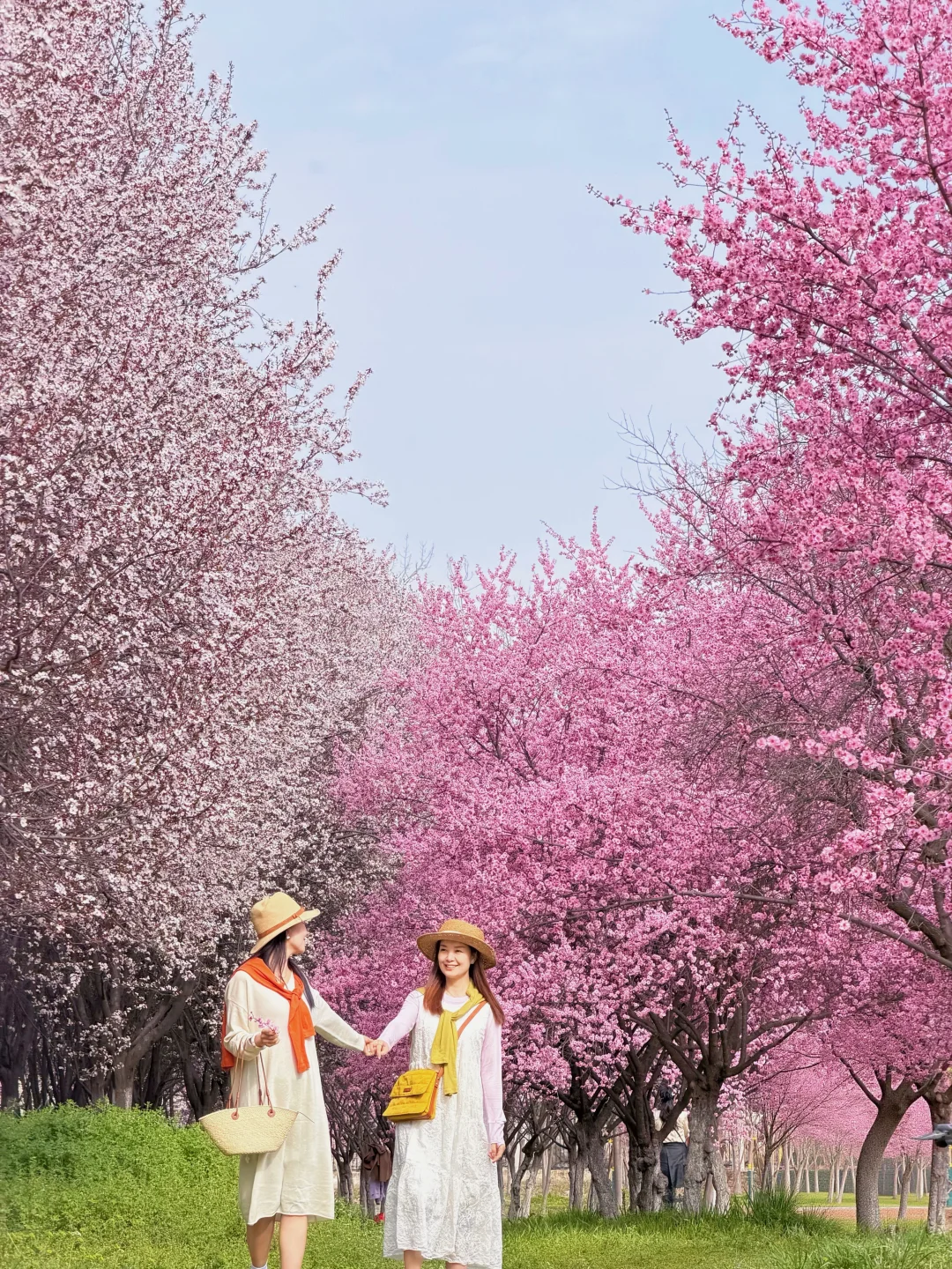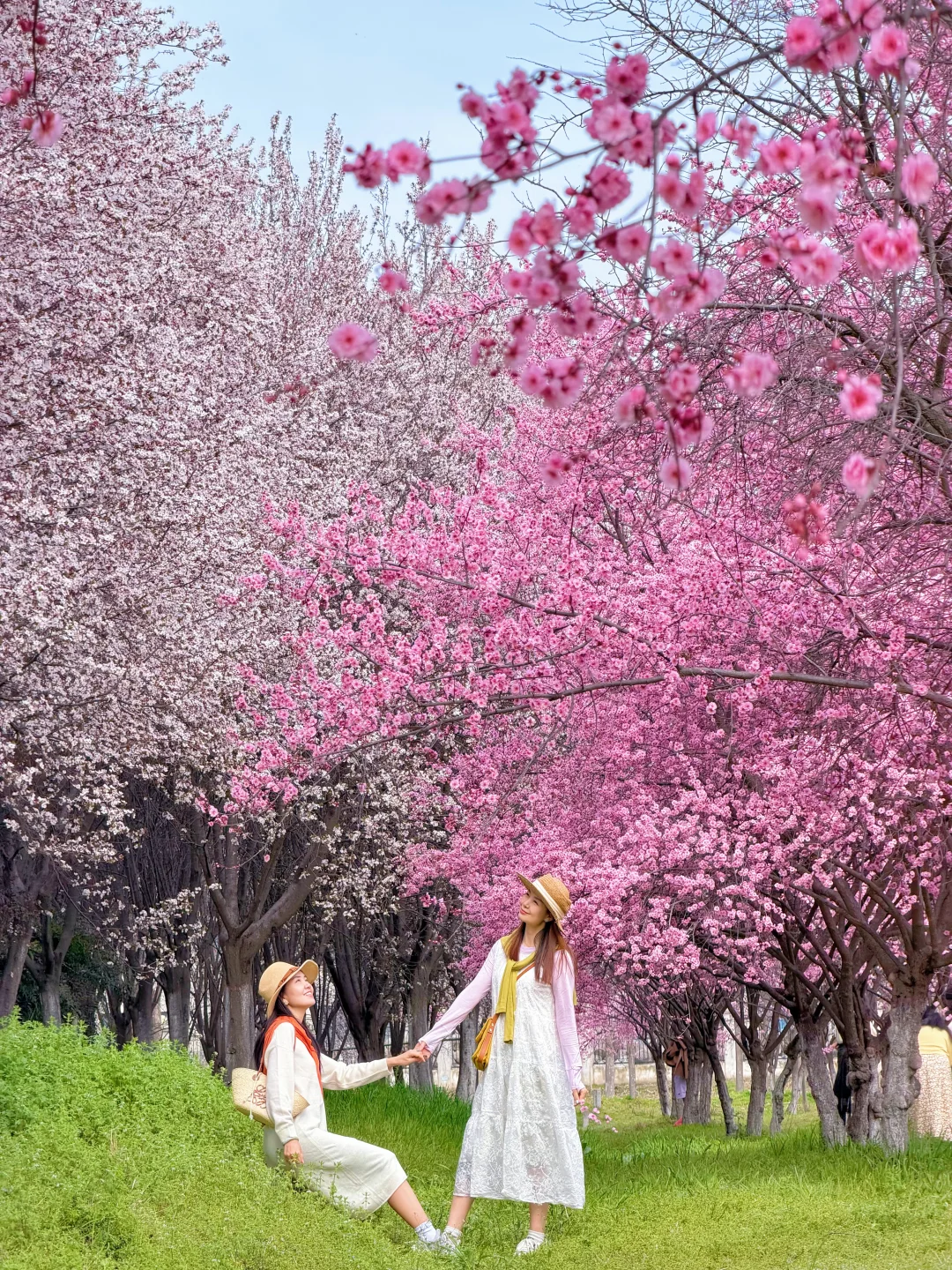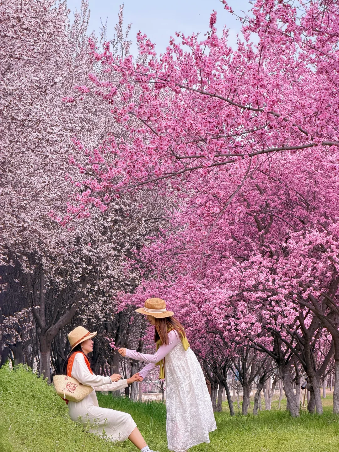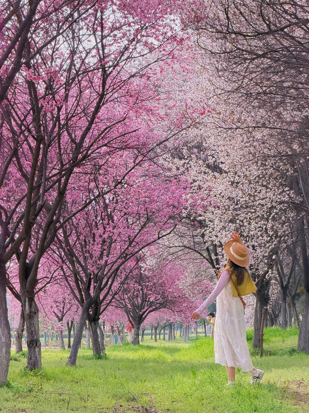 靠南边有一排紫叶李一排梅花交错在一起,用5倍焦距,人站远大概10米左右拍。可以拍出满屏花很美!