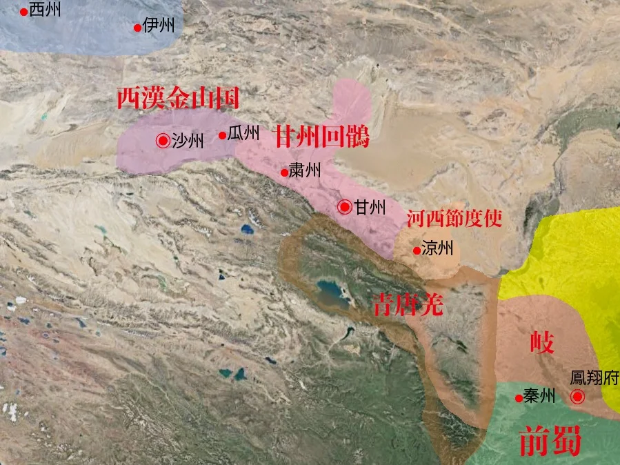 🌈900年前后,甘州回鹘势力占据甘州,建立政权,并不断侵扰,归义军东部疆域(甘、肃等州)逐渐丧失。