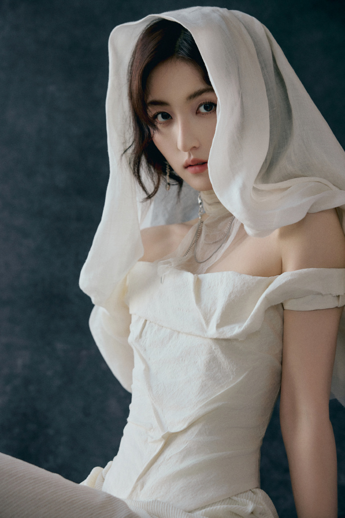 张子枫CMG中国电影盛典红毯造型出图,一袭白裙,搭配头纱和颈间薄纱,好有神性