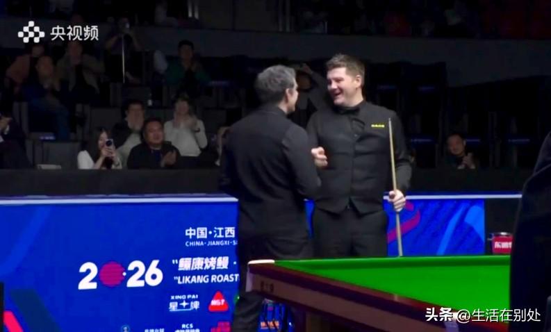 就是这个紧贴绿球的斯诺克,让奥沙利文拿到自由球,打出单杆153分的历史纪录。 这个自由球是这样来的: 开局,奥沙利文一如既往,轻碰红球堆,母球落底线。接着,瑞恩·戴也同样操作,两人你来我往,打了好几杆……然后,瑞恩·戴在继续这样打的时候,母球意外落底袋。 奥沙利文在得4分的同时,选择好母球点,打出了母球紧贴绿球的高质量斯诺克。 瑞恩·戴去解球,又想要让母球回到底线,解了三杆,母球都没碰到任何球,罚了12分,第三次时,母球不仅没碰到任何球,还让黄球和蓝球挡住了与红球之间的线路,形成自由球。 奥沙利文将绿球当红球打,母球来到高分区……之后,没有什么难度,围绕黑7来打。 这局奥沙利文得了169分,罚分得了16分,单杆打了153分…… 玉山是一个出神话故事的地方!斯诺克世界公开赛玉山站,50岁的奥沙利文在玉山再缔造一神话故事。 在打完这一局后,奥沙利文和瑞恩·戴都兴奋,瑞恩·戴向奥沙利文祝贺,两人有说有笑,奥沙利文还转身向观众竖起了大拇指。