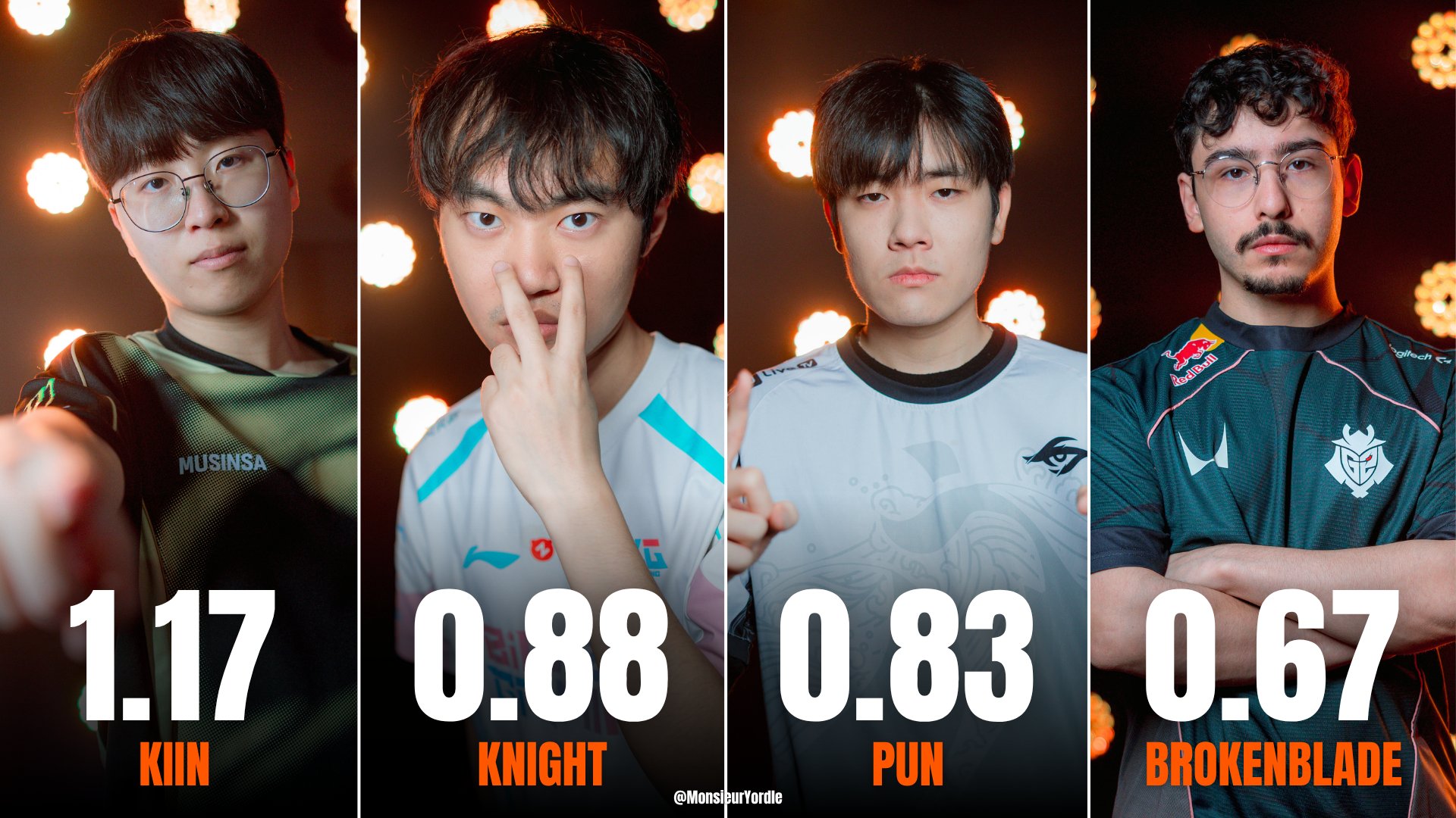 外媒统计先锋赛前四日场均单杀排行:Kiin、Knight位列前二