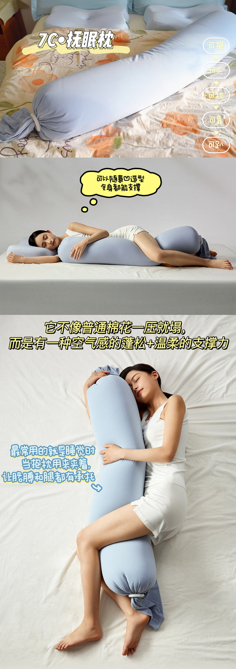 🛌 宅家幸福感拉满~7c这个蓝色长条抚眠枕也太好抱了,可以随意凹造型,久用也不会塌,带来稳稳的支撑感~而且还能一枕多用,可靠、可枕、可趴,超级舒服~U惠券: 网页链接,揪一个7c自 由枕(图12)+两个玻尿酸眼罩,26和31号分别在转發里开;屏论里再揪一位晒单号的朋友,免0️⃣单~家里好多7c的好物,枕头用了好多年了,这个抚眠抱枕也同样惊喜~之前就担心侧睡久了,高低肩、脊柱侧弯,也用过其他支撑胳膊和腿部的枕头,但是经常醒来就不知道枕头去哪了