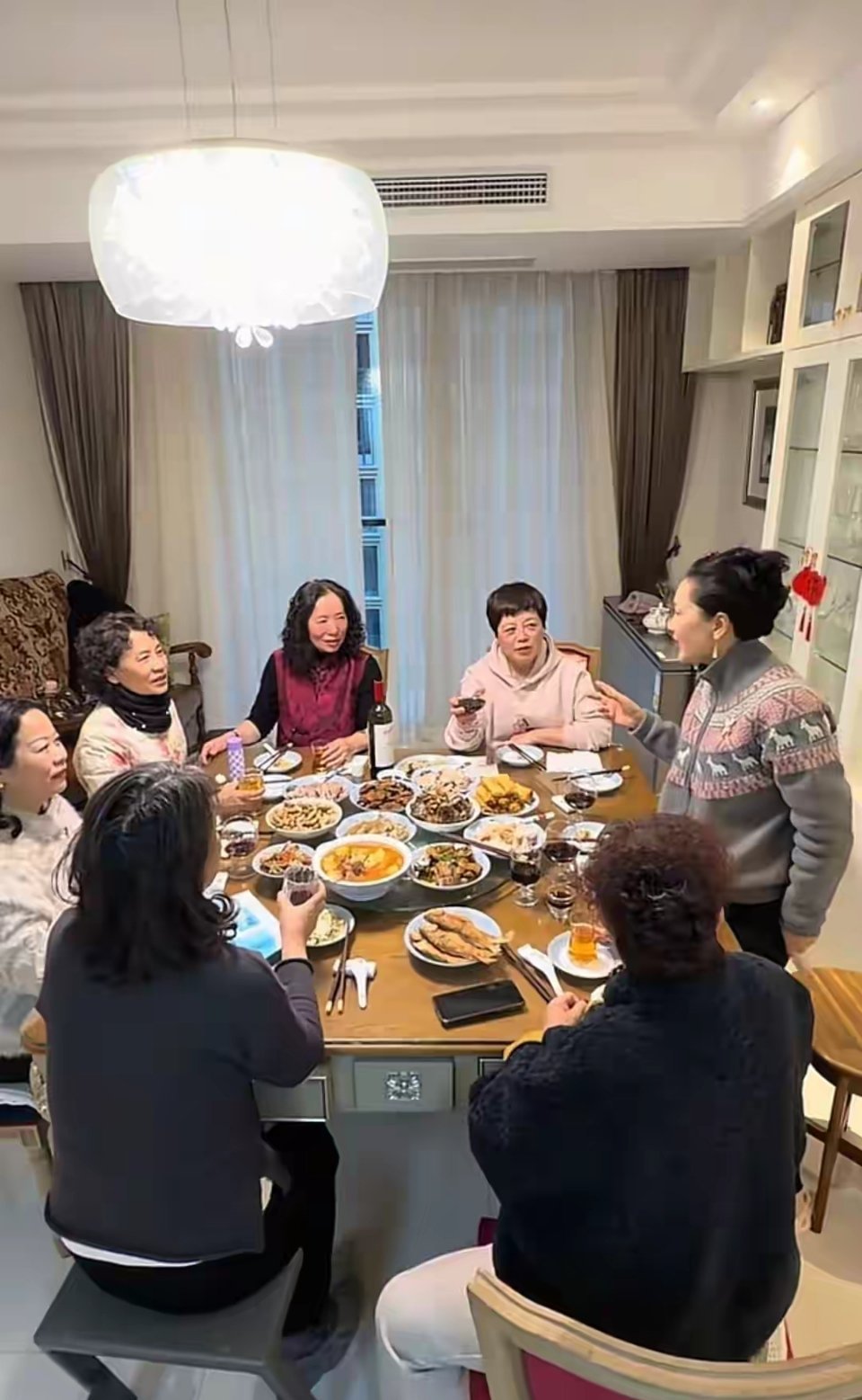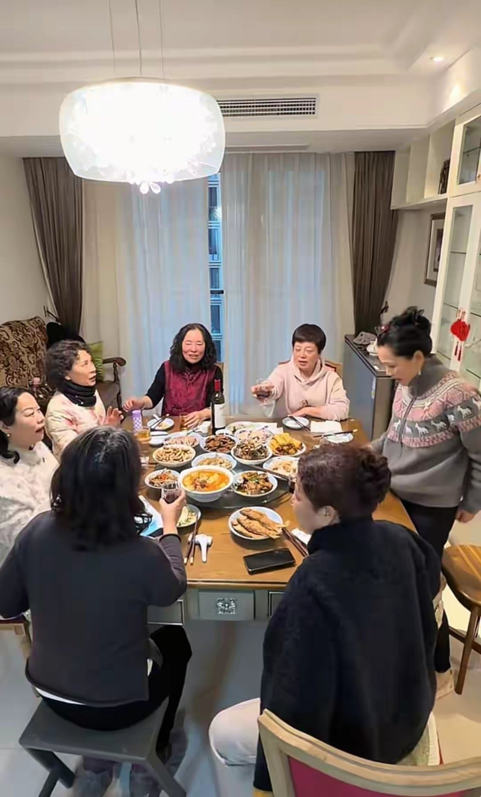 62岁何赛飞与好姐妹在家中小聚,好接地气,氛围温馨又欢乐