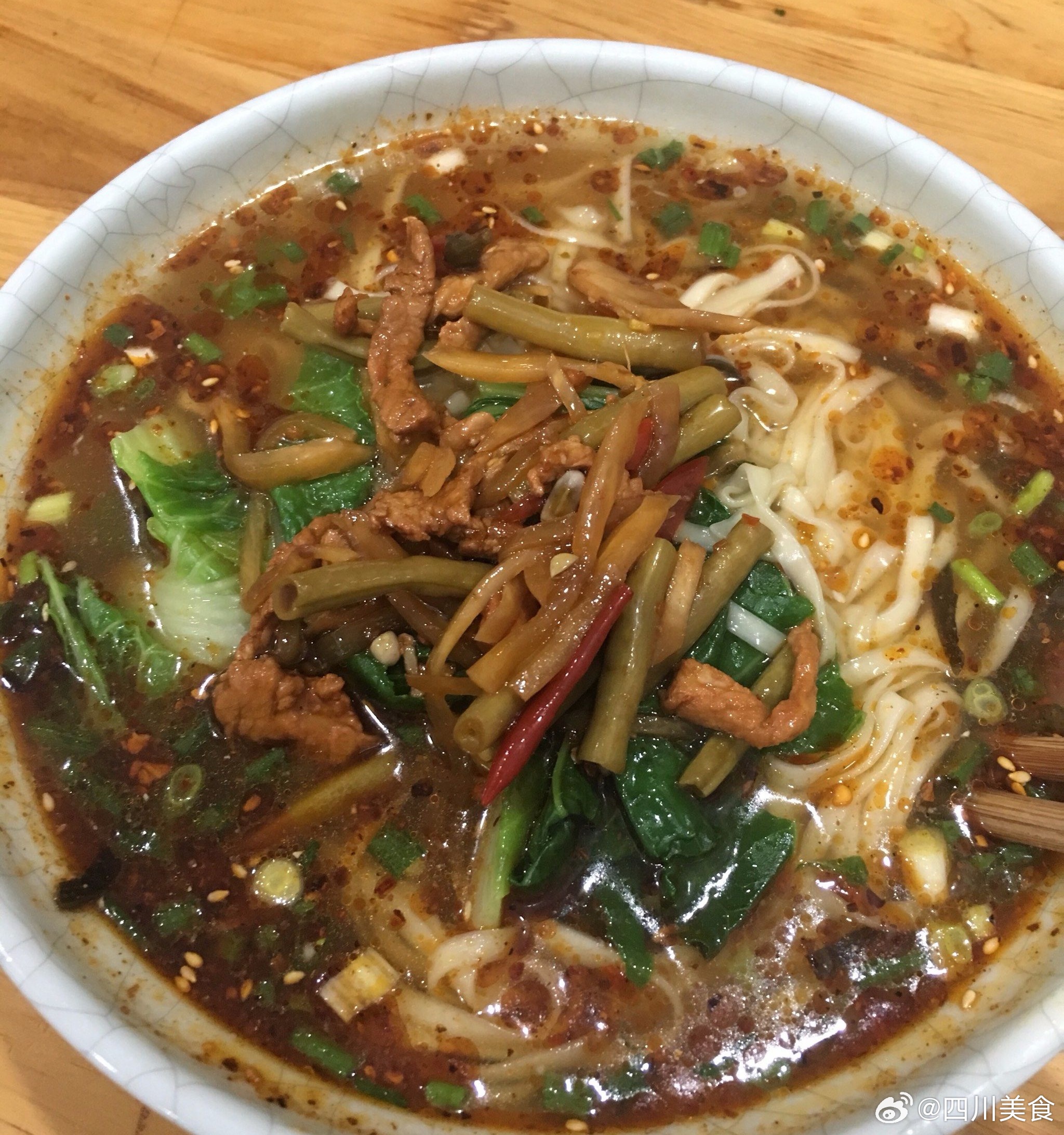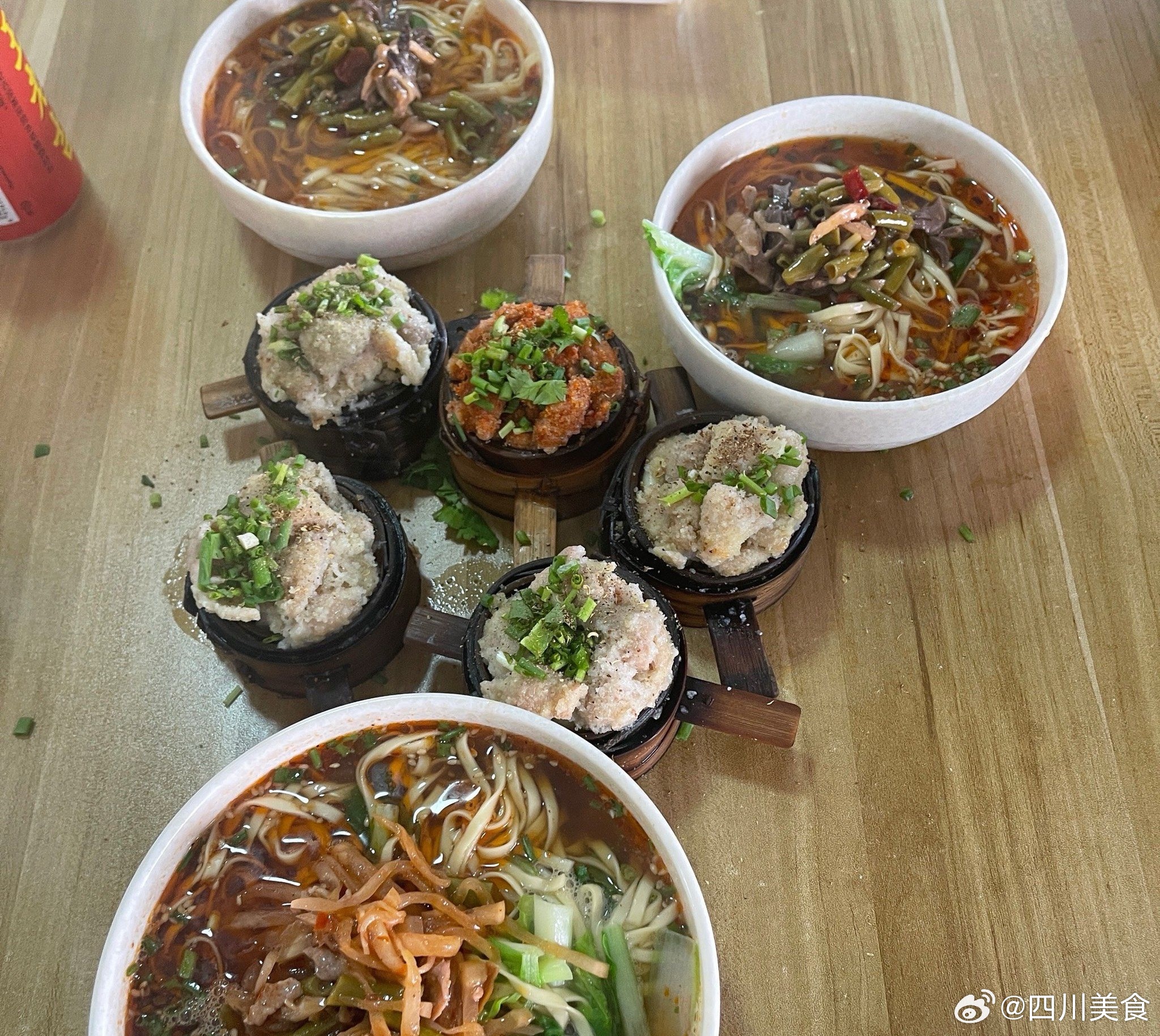 川东格格面:本地人回开江必吃,最推荐他家的格格,上汽羊肉格格,肥肠又蒸得特别耙,这两样味道都恰到好处,放上花椒面,香菜,葱,巴适。酸辣肉丝面,韭菜叶子面比较入味,配到格格一起吃很不错。