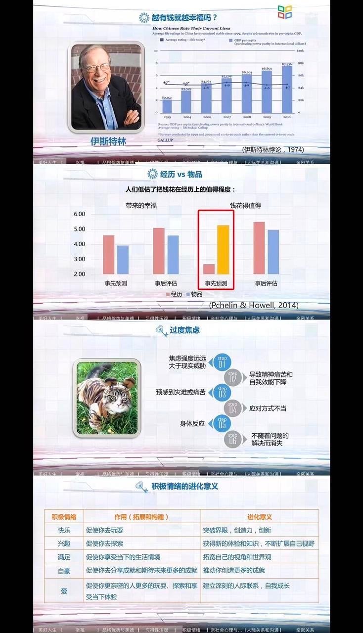 像《积极心理学》这门课,听完最大的感受就是:它在反复纠正一个我们默认很久的误区——“只要条件变好,人就会更幸福”。但其实不是。课里讲了一个很经典的研究(伊斯特林悖论):当收入达到一定水平之后,钱和幸福感基本就不再正相关了。真正影响人的,反而是一些更“看不见”的东西——比如关系、意义、还有你怎么理解自己的人生。
