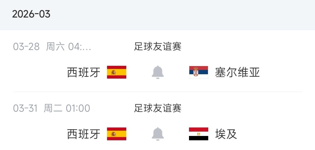 西班牙新一期大名单出炉:亚马尔 佩德里 费尔明领衔,罗德里、赫伊森 库巴西 在列,霍安·加西亚入选 03月20日 西班牙国家队今日公布了新一期球员名单,亚马尔 佩德里 费尔明领衔,罗德里、赫伊森 库巴西 奥尔莫在列,霍安·加西亚首次入选。 本月底西班牙将先后在北京时间3月28日凌晨4点对阵塞尔维亚和3月31日凌晨1点对阵埃及