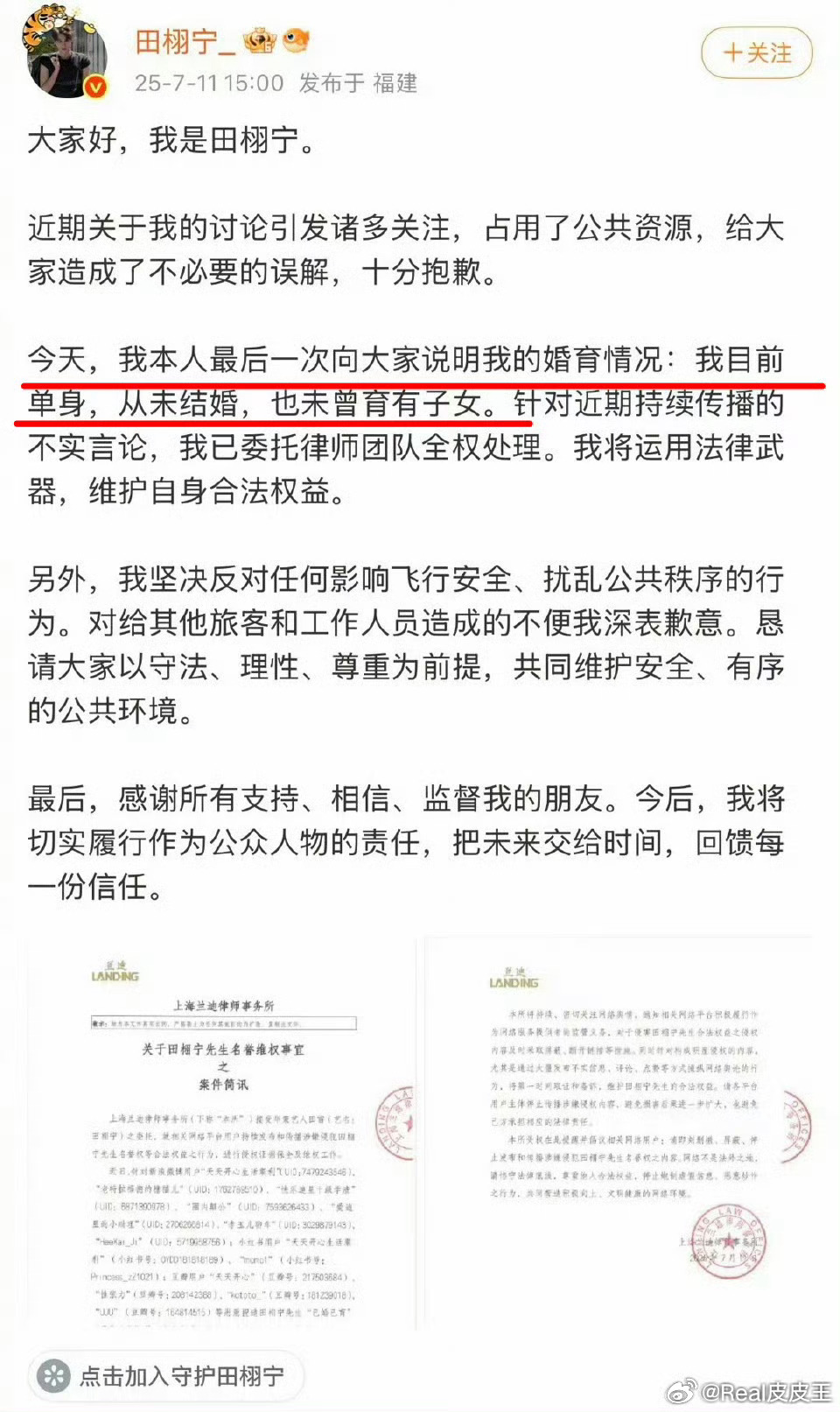 田栩宁方曾至少三次否认生子传闻,强调单身。