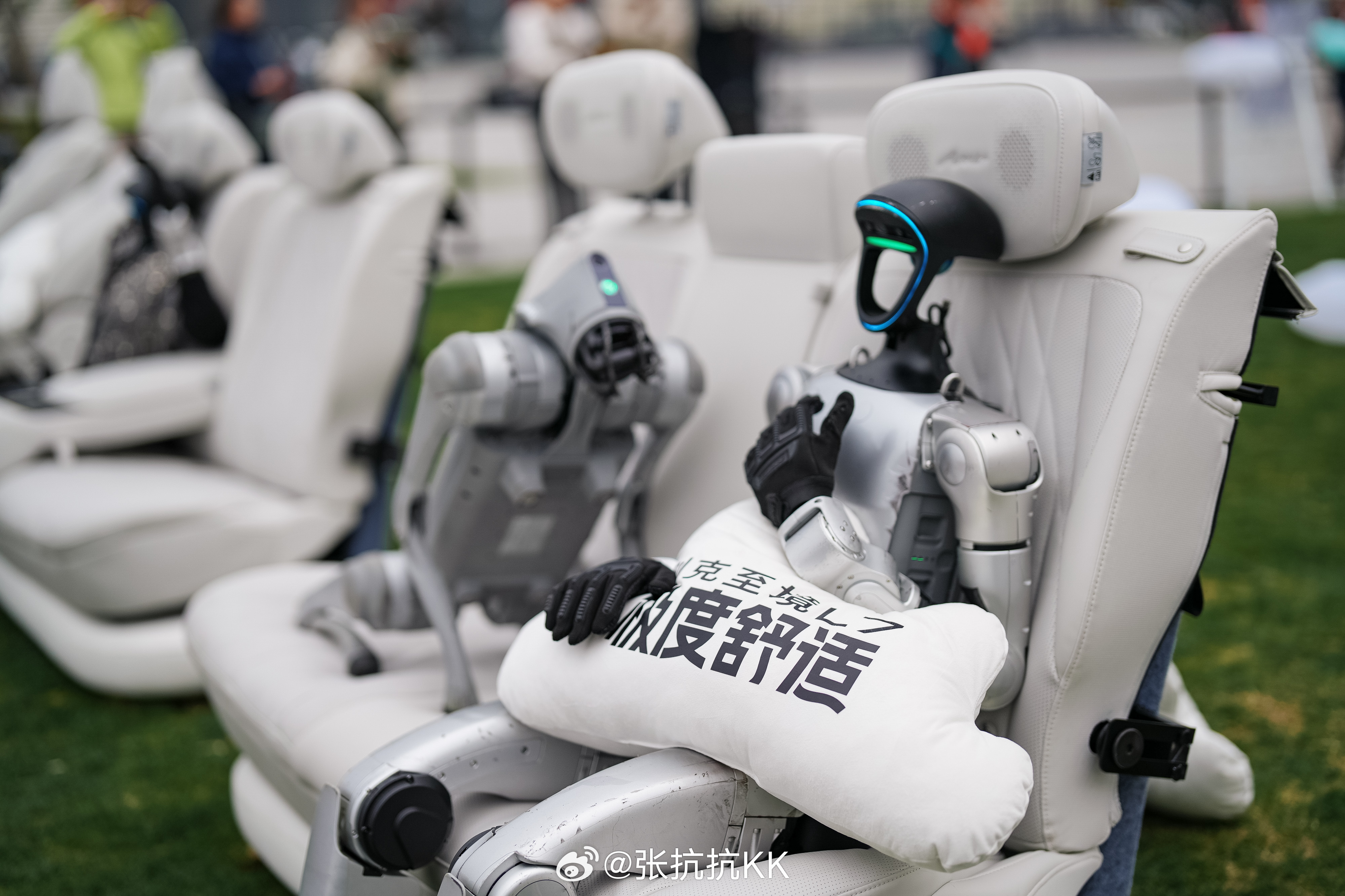 甚至还有小狗狗,也在座椅上怡然自得。还有草坪、餐厅、云朵这些都挺轻松,这氛围正对应了本次的主题“极度舒适”的悬浮座舱。