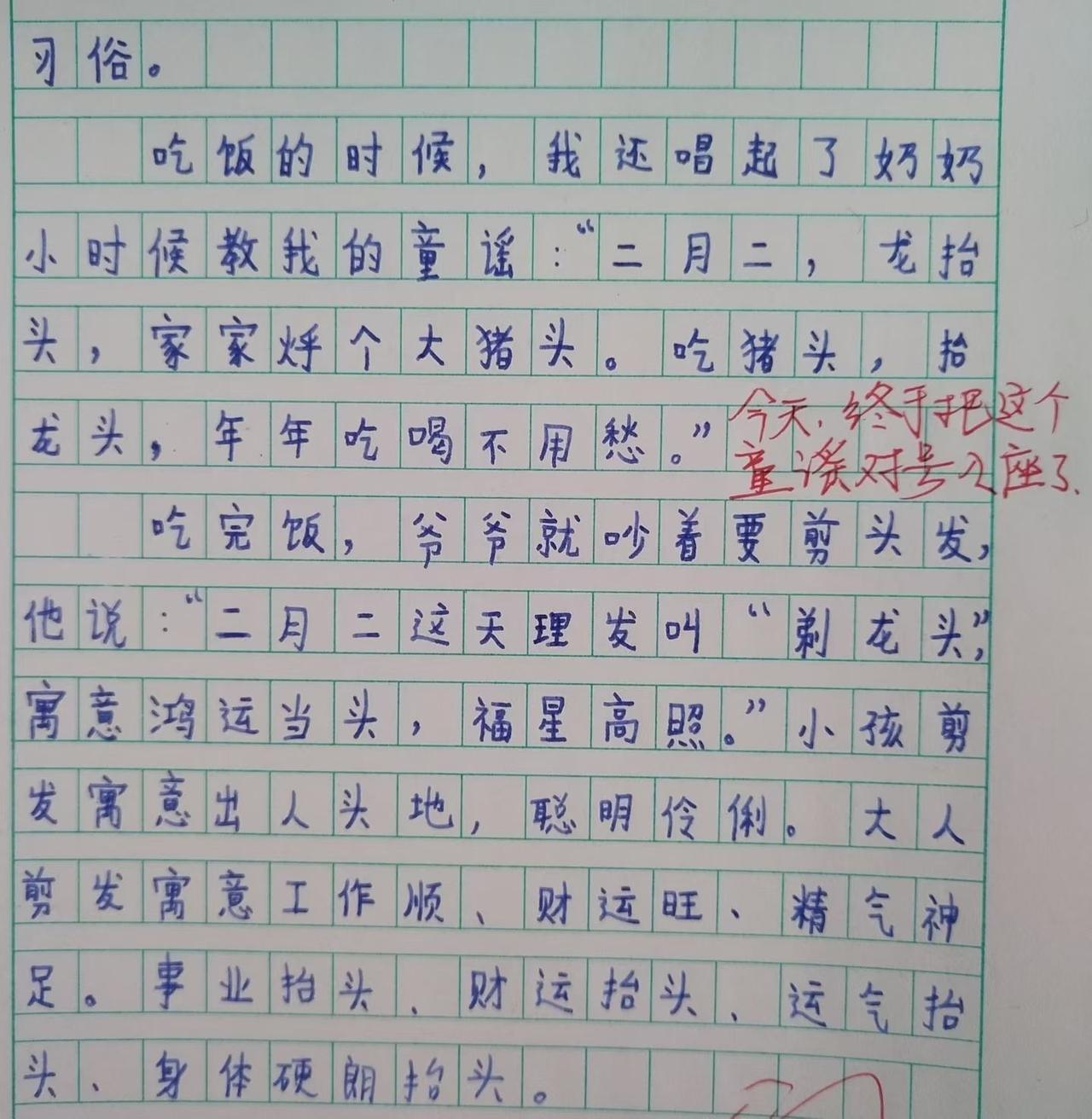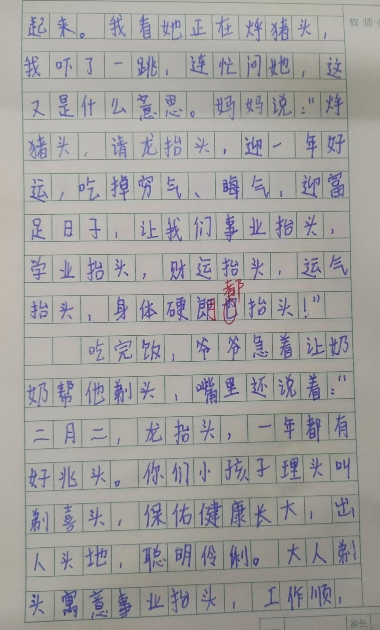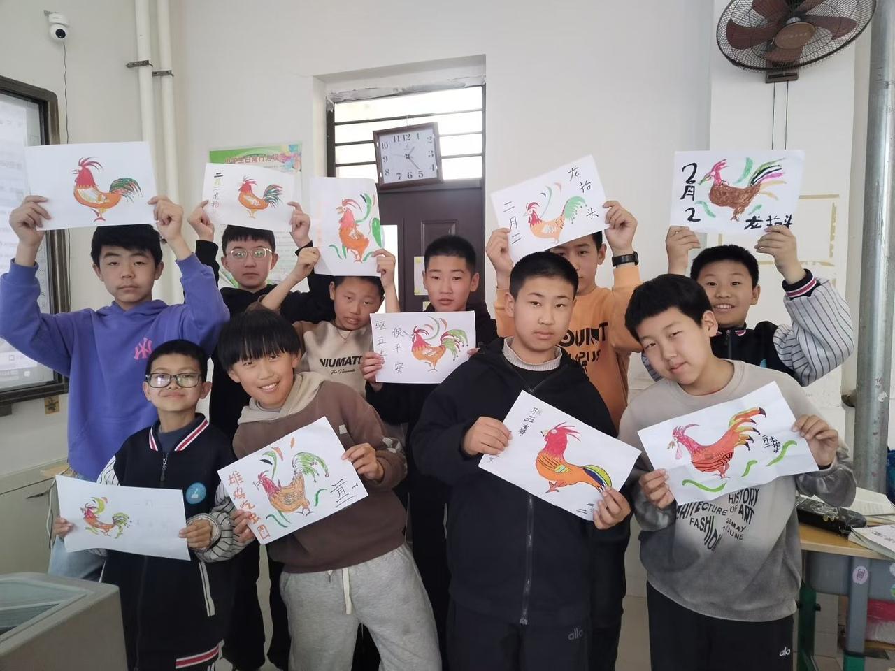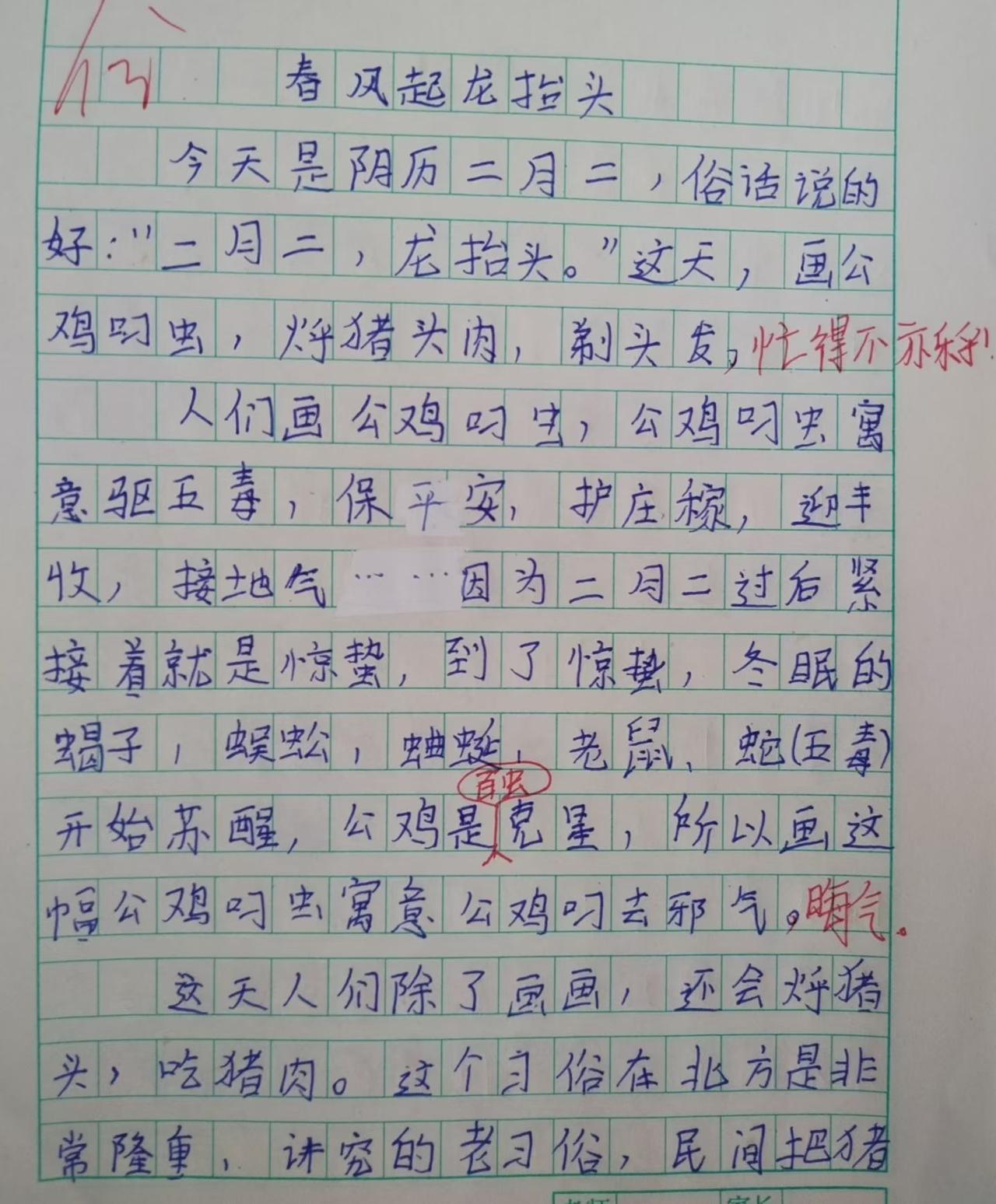 二月二龙抬头,万物复苏迎新春。学生们展示作品和写的作文。