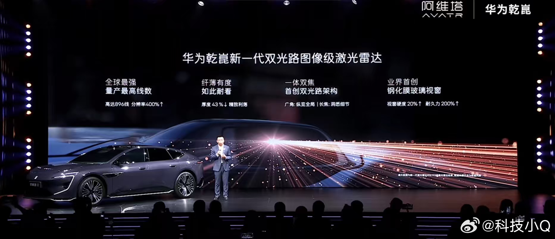 新阿维塔12在感知部件上实现了重大升级,双光路图像级激光雷达,分辨率提高400%;两颗侧向的高精度固态激光雷达,探测精度提高了500%;分布式4D毫米波雷达,探测准确度提升67%。整车总共配置了多达32个智能传感器,安全没有选配,新阿维塔12全部标配! 安全背后有乾崑 新阿维塔 12 搭载乾崑新四激光方案