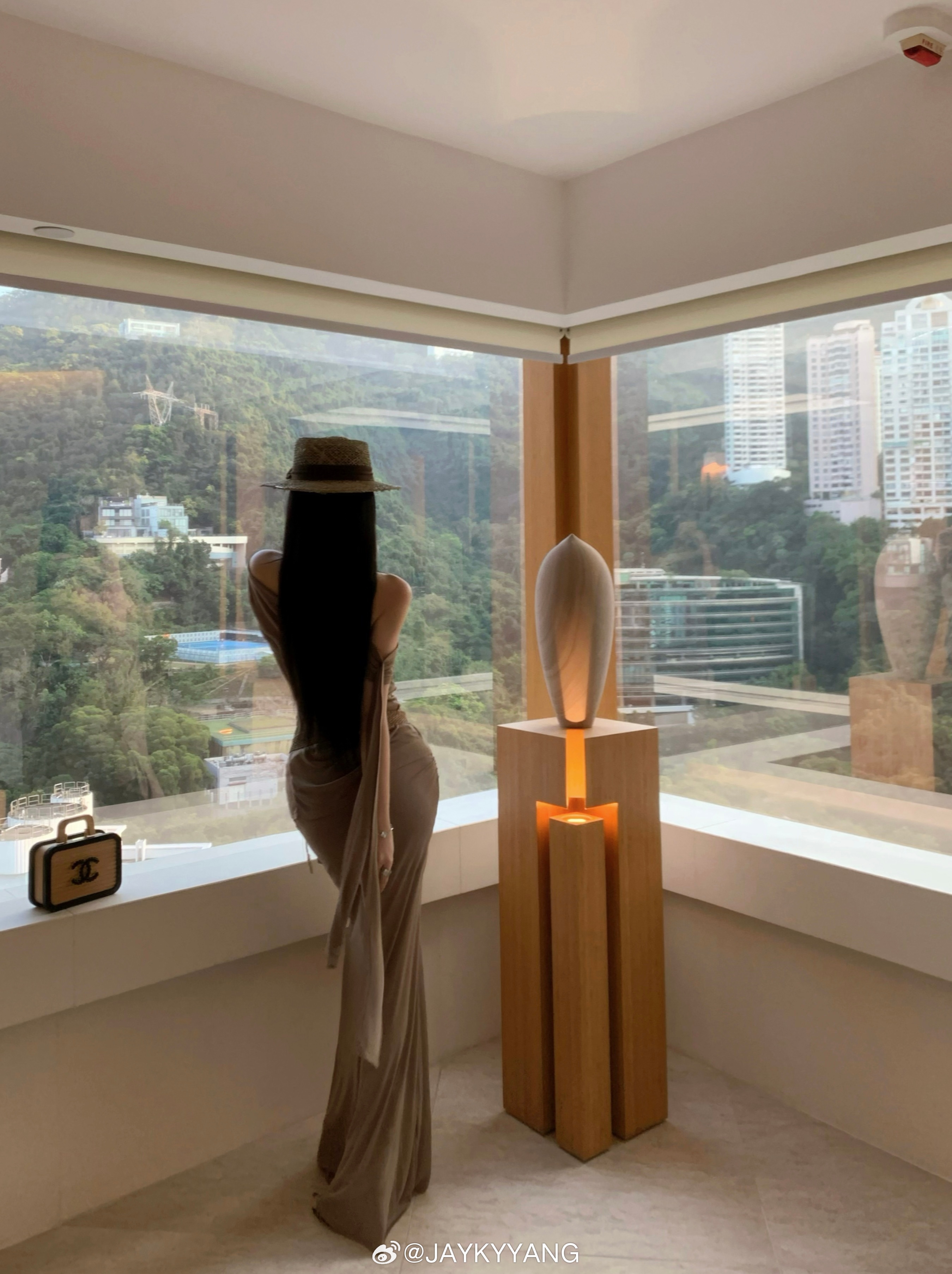 小妖精张纯烨,黑色西装短裙,搭配丝袜美腿妆造。张纯烨