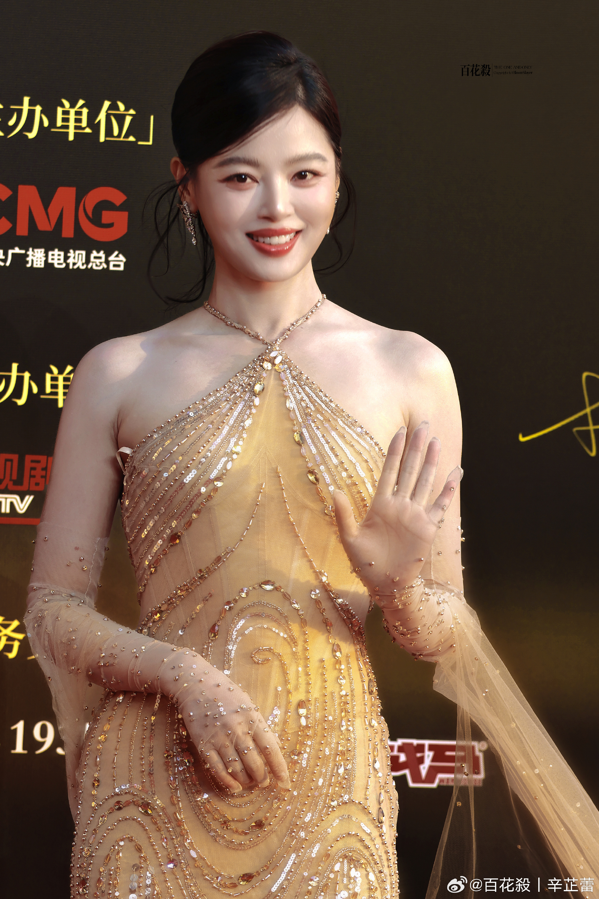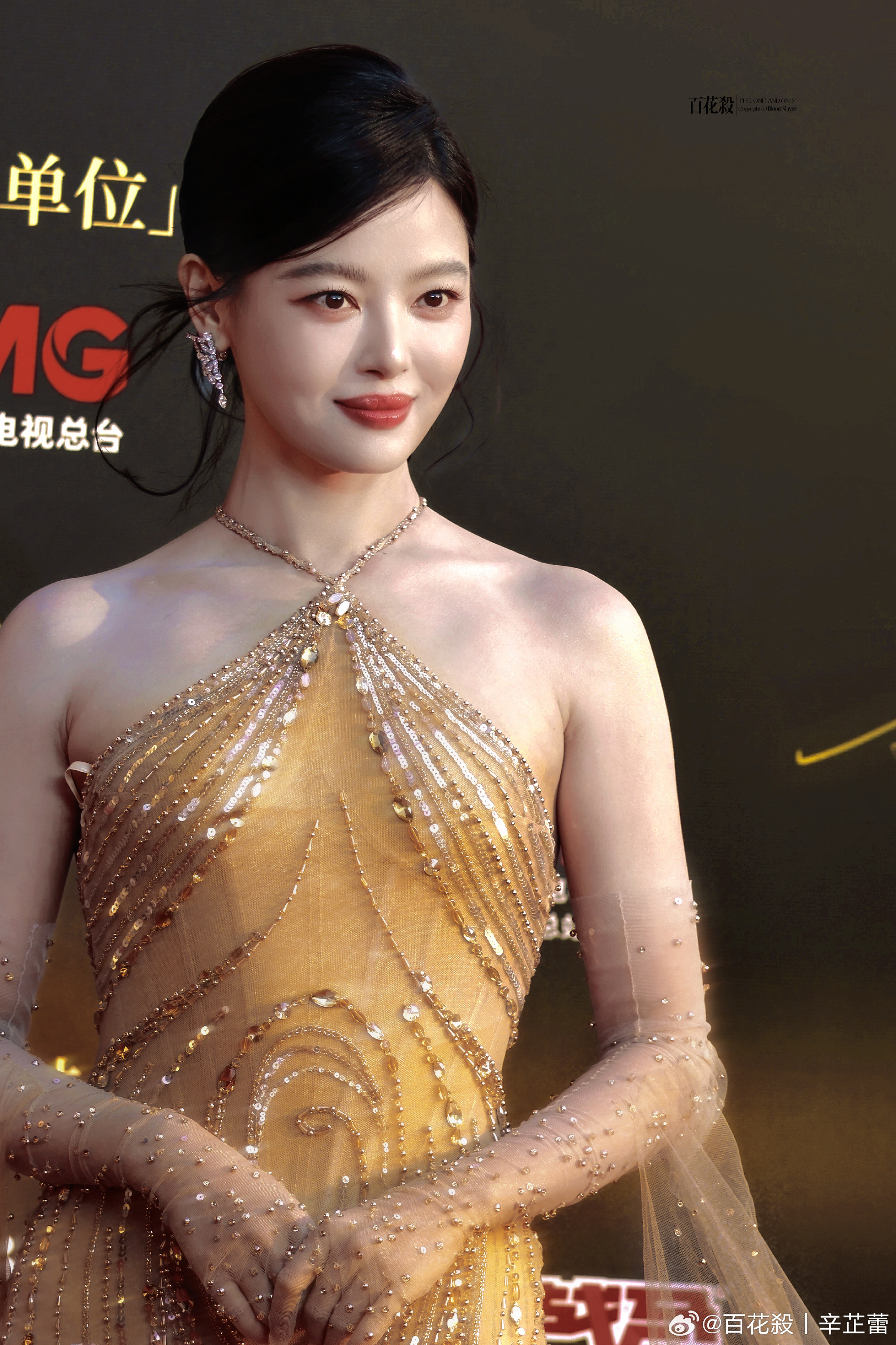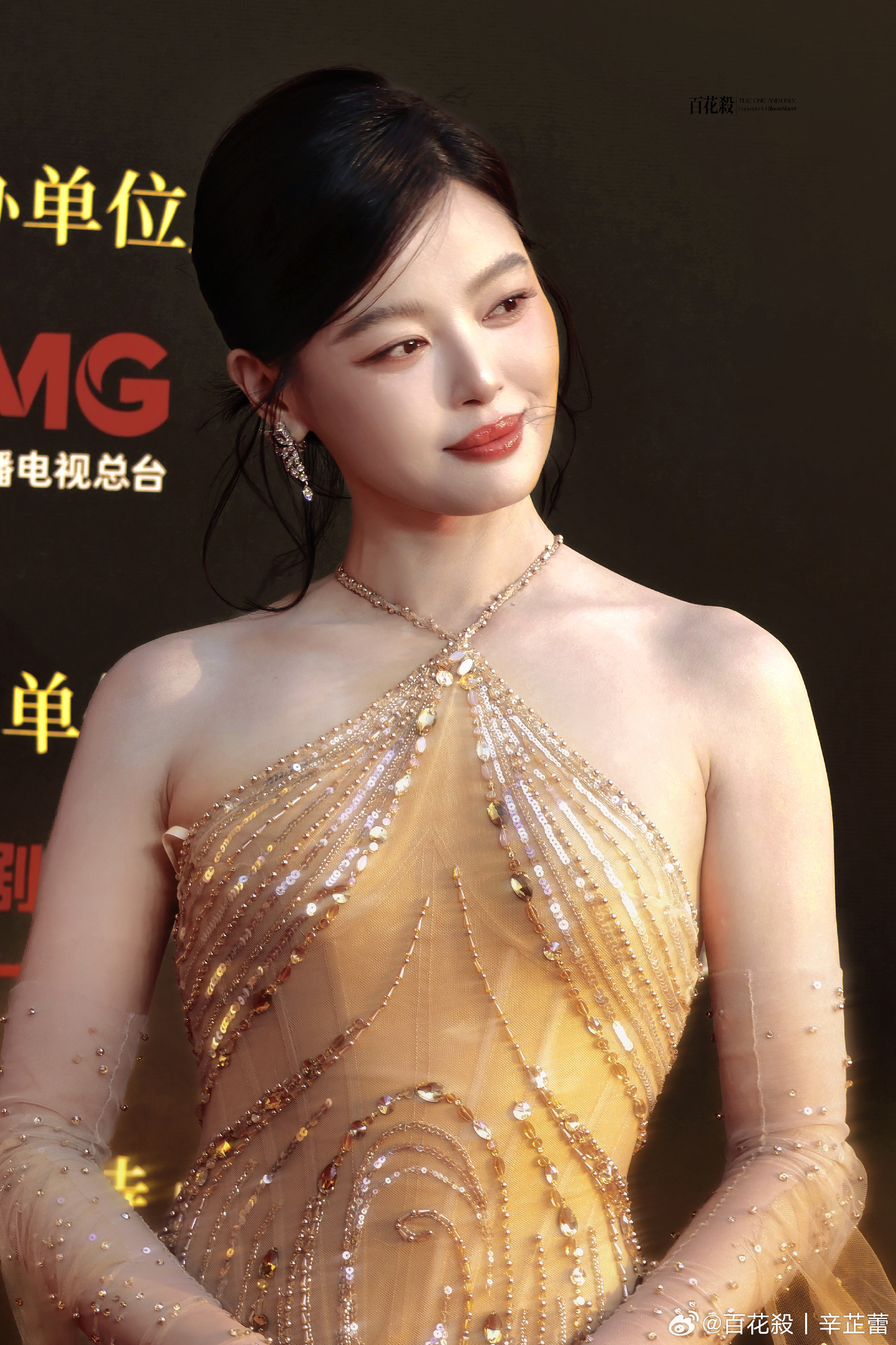 辛芷蕾挂脖亮片纱裙辛芷蕾CMG中国电影盛典红毯来了!流光溢彩的钻饰裙包裹着曼妙曲线,红唇浅笑间尽显大气从容,美得张扬又有力量感这声妈咪我先叫了cr.logo