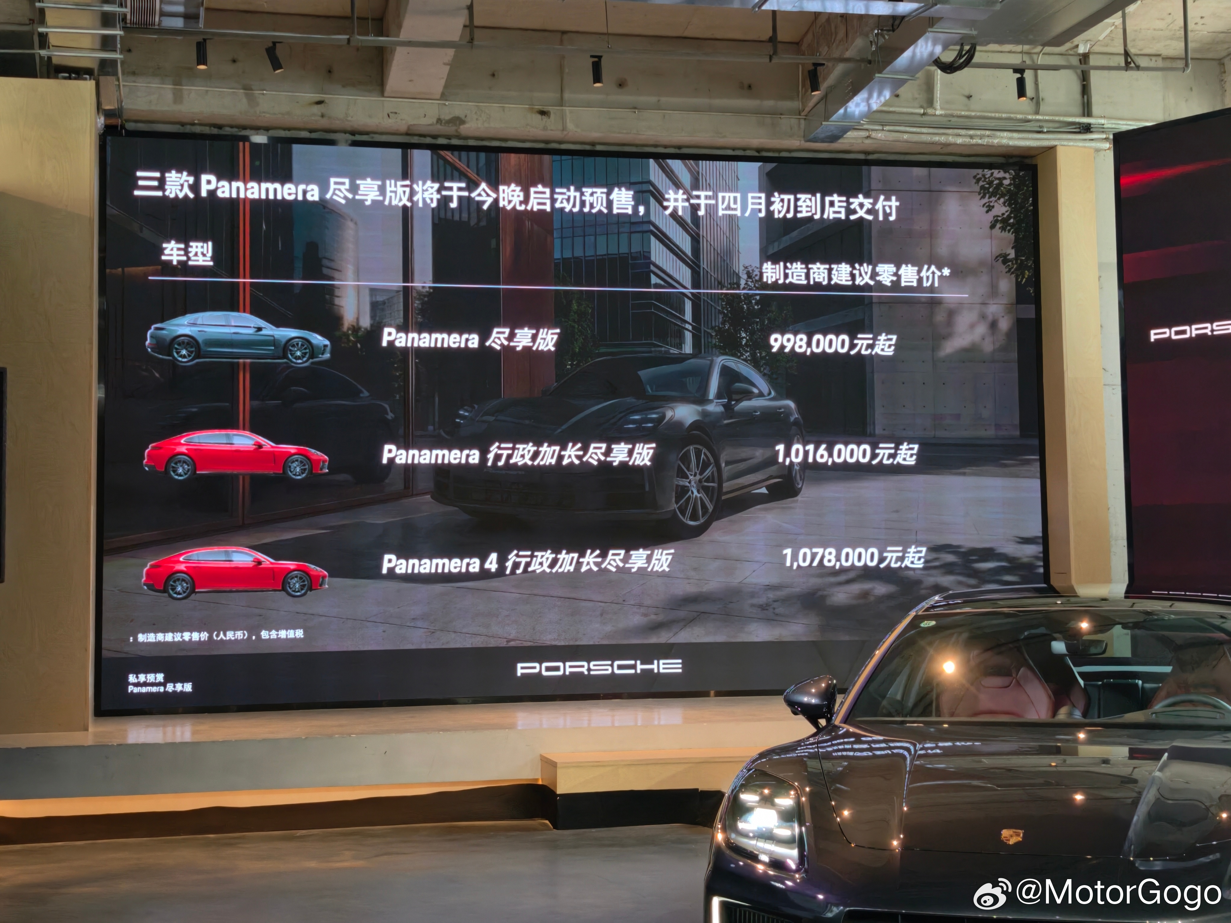 保时捷今天推出了 Panamera 尽享版,售价为 99.8 万元起。