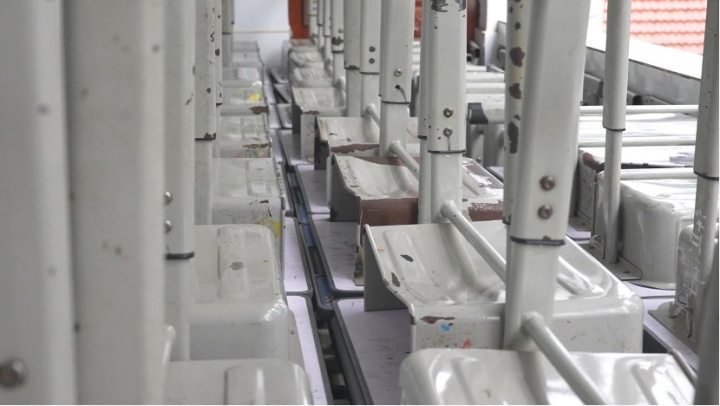 学校的旧课桌椅已经出现凹陷生锈等多处损坏