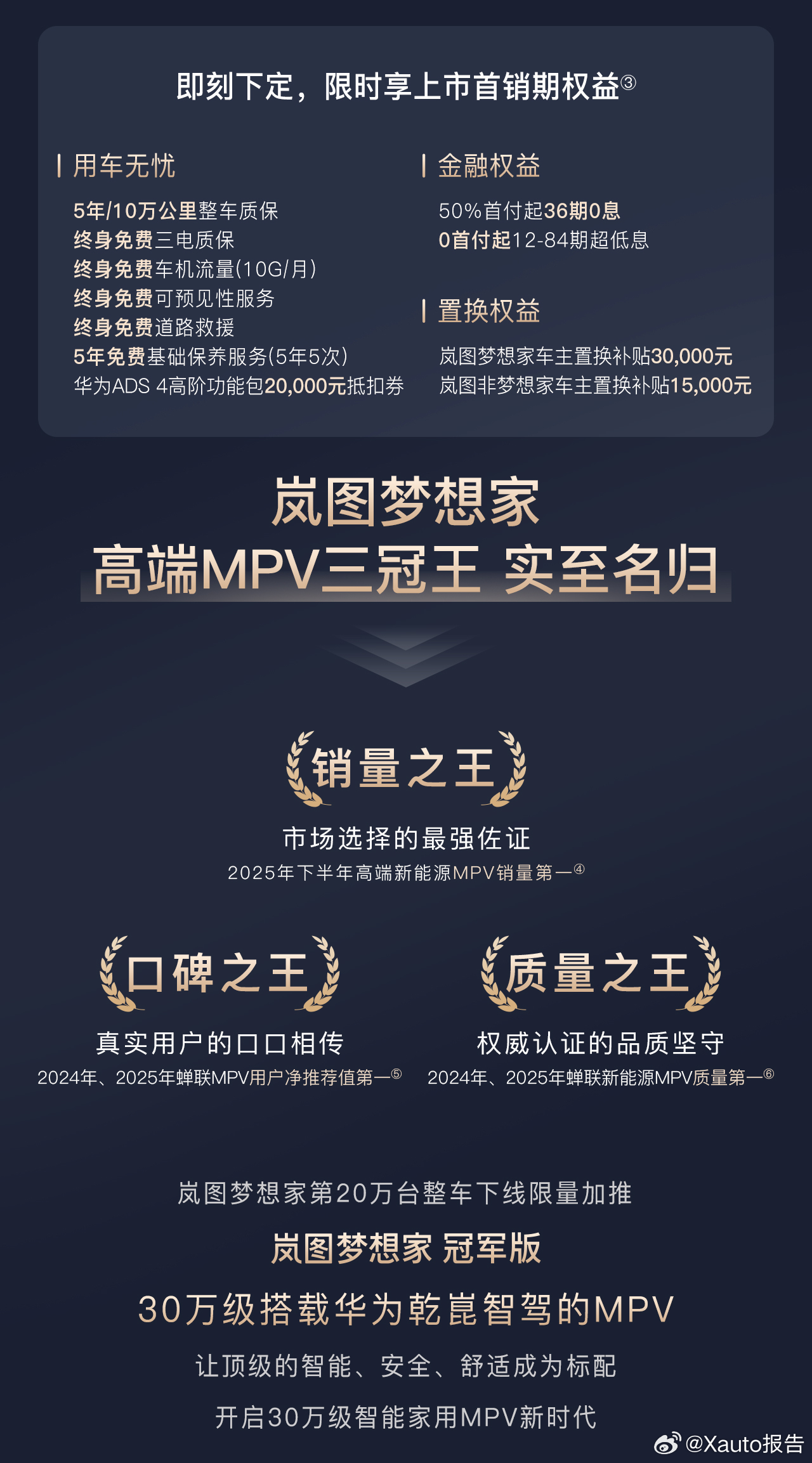 一图读懂岚图梦想家冠军版正式上市,售价30.99万元。