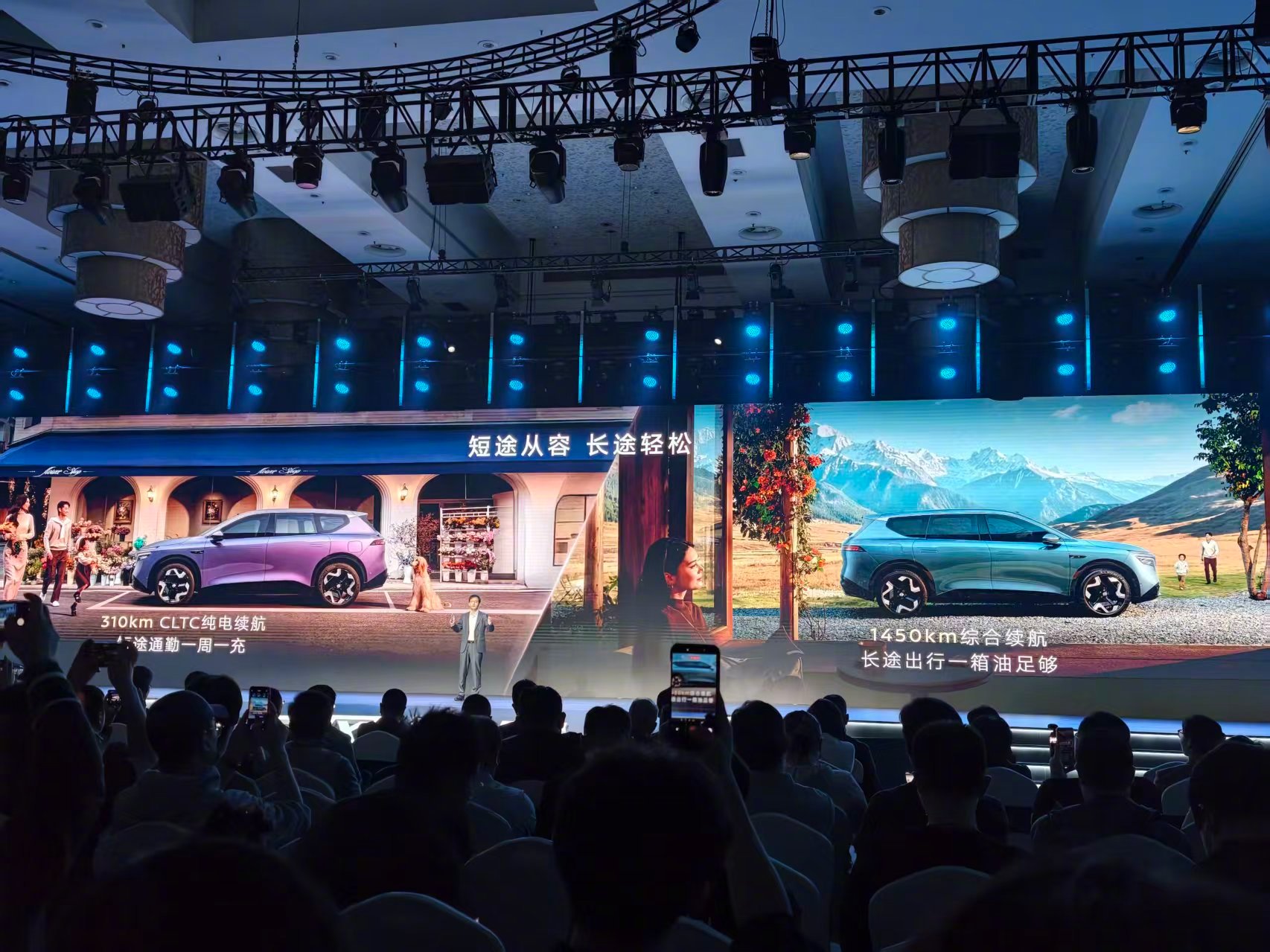 动力部分,增程版搭载 1.5T增程器和41 度电池,发动机最大功率109kW,驱动电机最大功率195kW;纯电版则提供215kW 和 250kW 两种单电机版本。