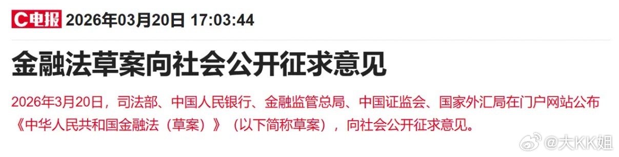 1、今天盘后两大重要消息一是央行、证监会、外汇局、金管局等五部门发布,金融法草案面向社会公开征求意见。文件明确提出支持中长期资金入市,增强资本市场内在稳定性,完善投资者与金融消费者权益保护机制。金融法属于长期制度利好,将从发行、交易、监管、资金等多维度规范市场,重点防范系统性金融风险。