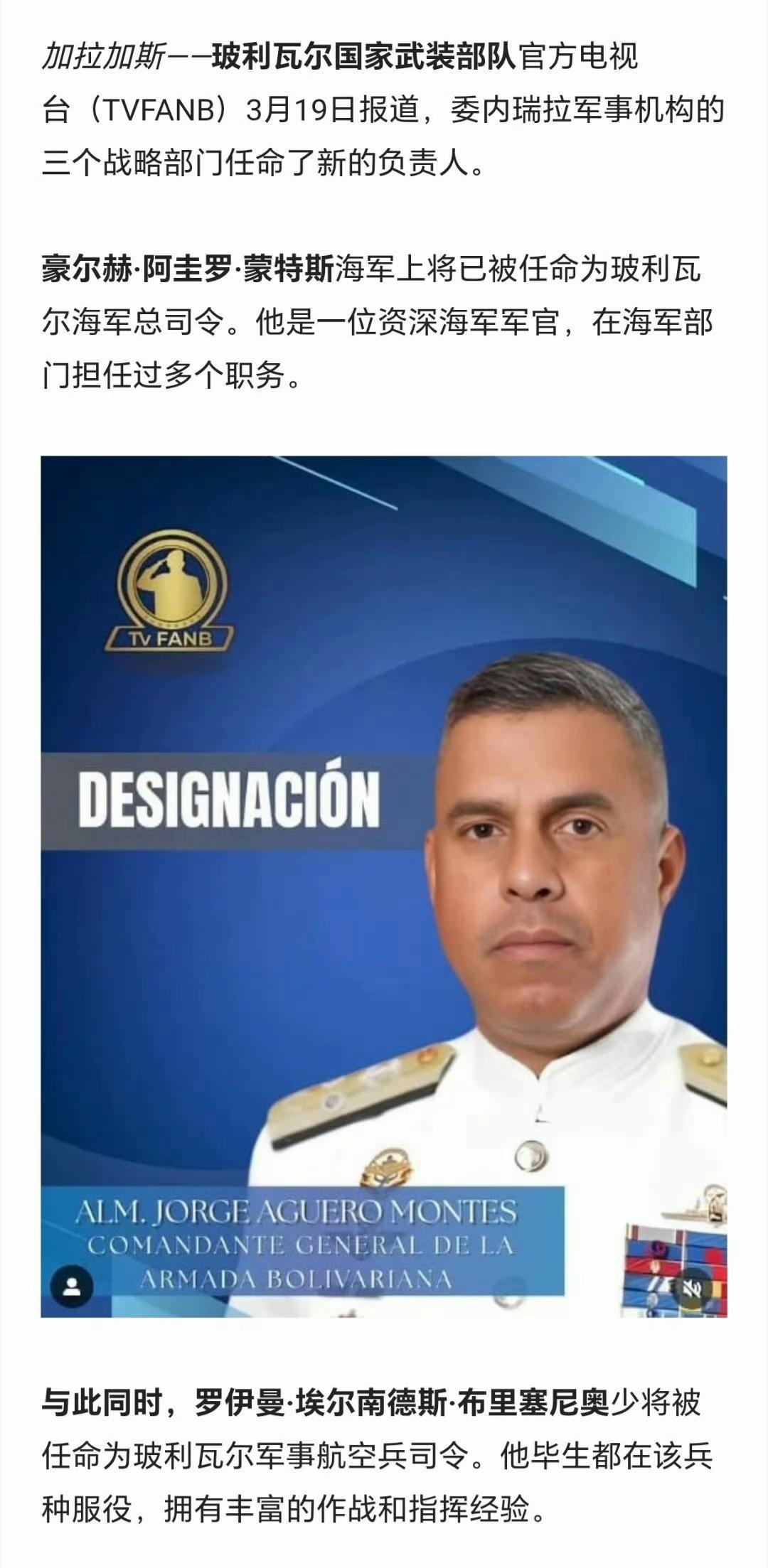 委内瑞拉代总统德尔西·罗德里格斯解除了旧有的军方领导层,更换国防部长,更换了整个最高指挥部,旨在后续马杜罗将被罢免后加强控制。同时还更换了多名政府部长。用不了多久,她的代总统称号将转为正式总统。