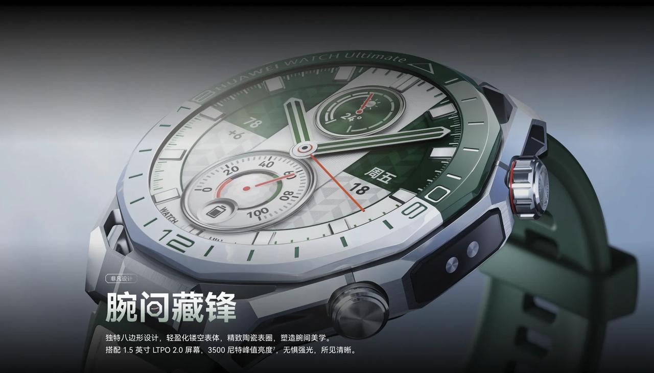 在高端腕表市场,华为已经逐渐取代传统高端腕表,成为市场的新宠。 根据IDC发布的数据可以看到,在2025年中国腕戴设备市场出货量为7,390万台,同比增长20.8%,其中华为凭借着2510万台出货量,占据了34%的市场份额,稳居国内市场第一,而这也恰恰证明了市场对于华为腕表的认可。而就在3月20日,华为官宣华为WATCH Ultimate 2非凡探索 旷野绿预热,通过海报内容可以看到,新品售价7999元。 据了解华为WATCH Ultimate 2非凡探索 旷野绿作为新一代全能表王将持续突破,带来更极致的腕上体验。设计上将蓬勃生机与向往自由的精神注入腕间,采用双色纳米微晶陶瓷烧制而成,并且还有独特的绿白双色搭配,而表圈侧面的山峰状纹路,还与双色设计相呼应,形成独特的温润光泽。 总得来说,新一代全能表王不仅有创新的设计,满足高端圈层的审美,同时高尔夫等运动满足高端圈层的运动需求,含金量堪称智能手表界的劳力士,是新一代“智能绿水鬼”。