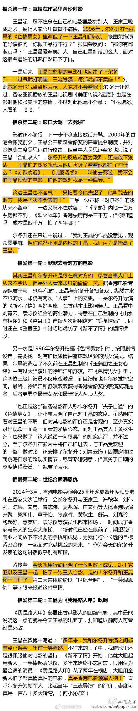 王晶说和尔冬升年轻时老吵架 王晶近日在社交平台回忆与尔冬升的早年往事,直言年轻时两人老吵架,“后来长大了没那么小气了”,多年恩怨如今一笑泯恩仇。