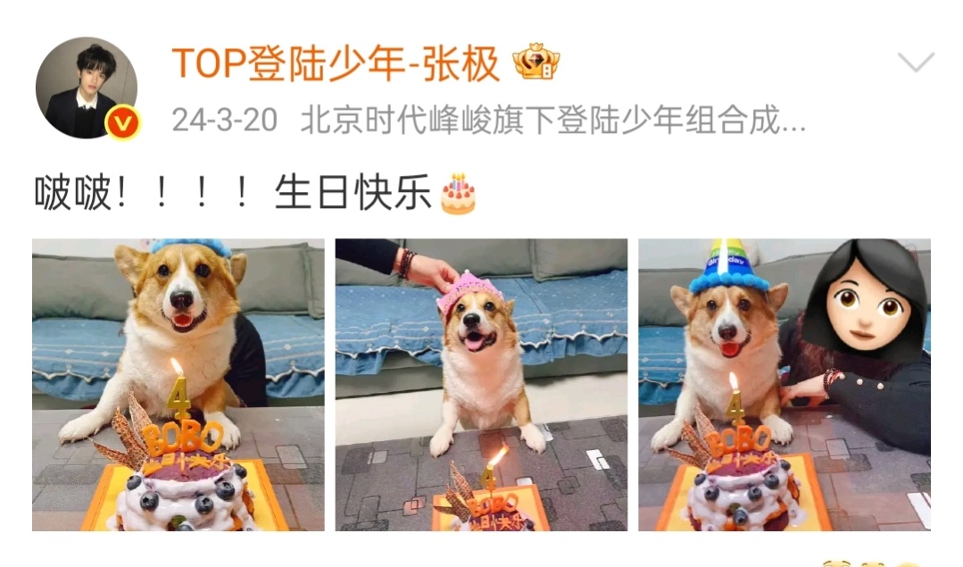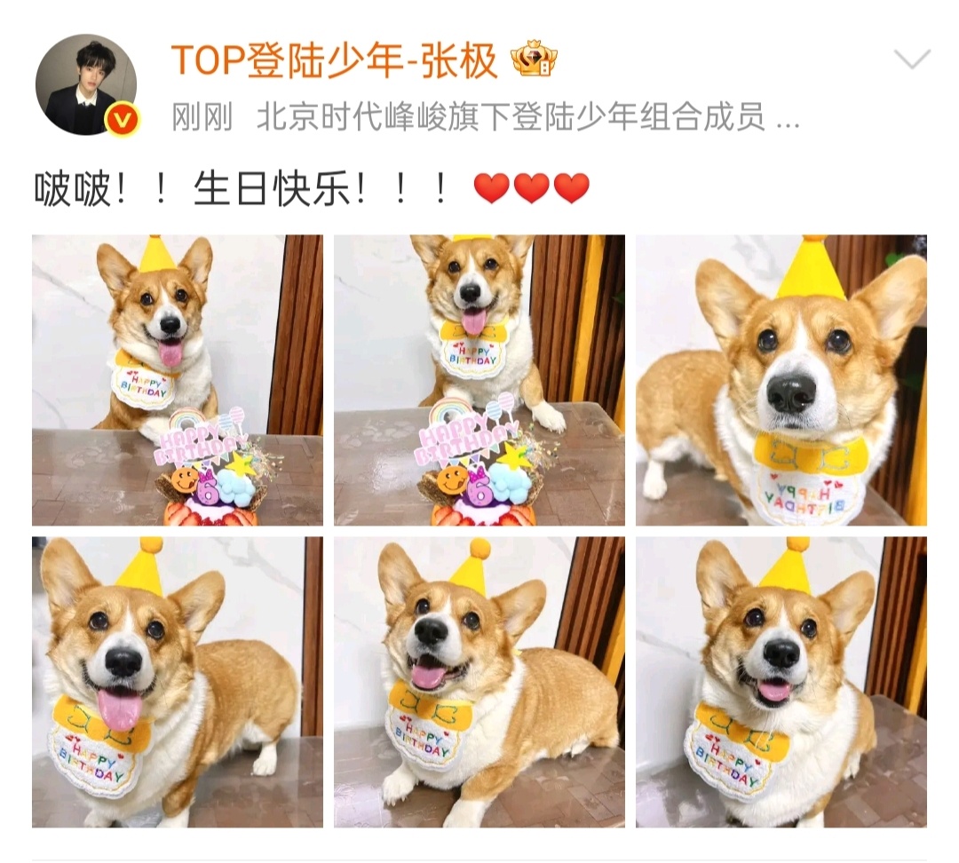 张极连续三年给啵啵庆生张极连续三年发博给啵啵庆生了🎉🐶等比例长大的两只光看画