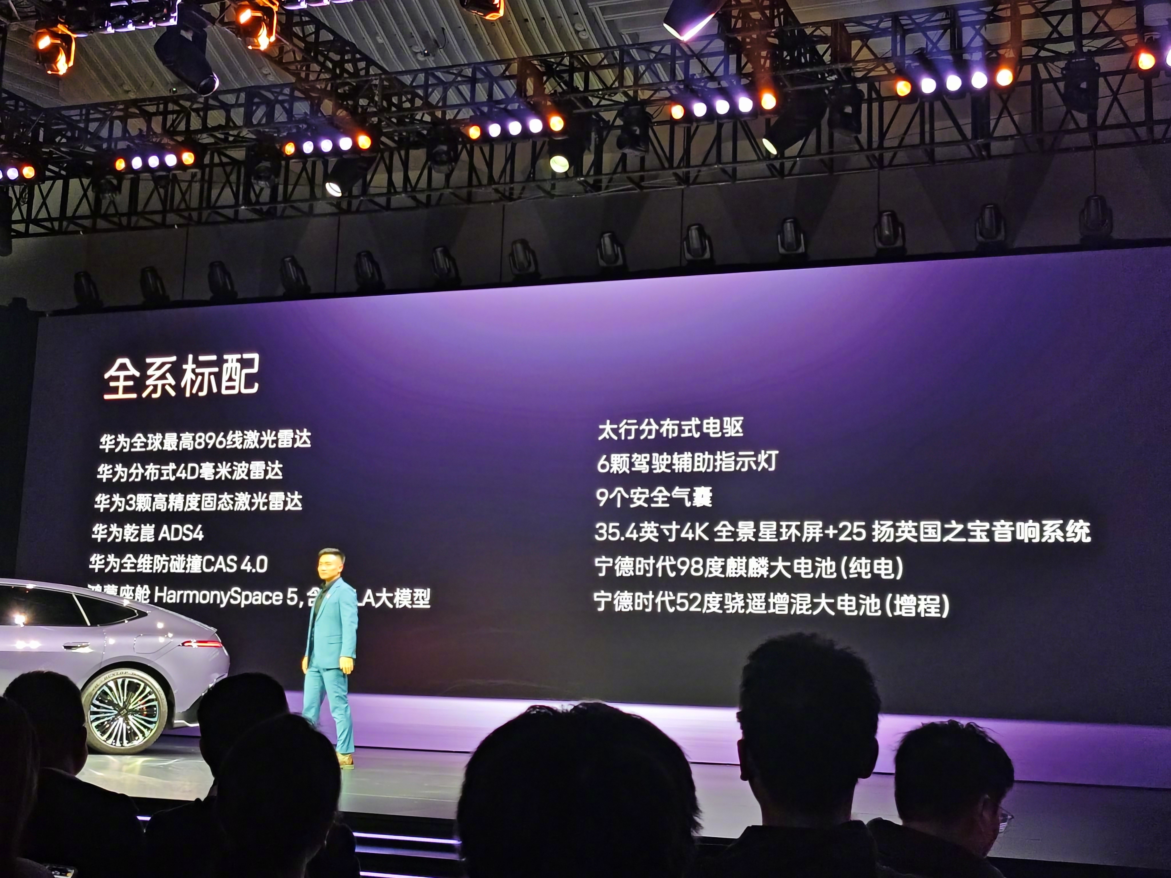 12- 宁德时代大电池,全系标配(针对纯电车型,98度麒麟大电池,全系标配;针对增程车型,52度骁遥增混大电池;