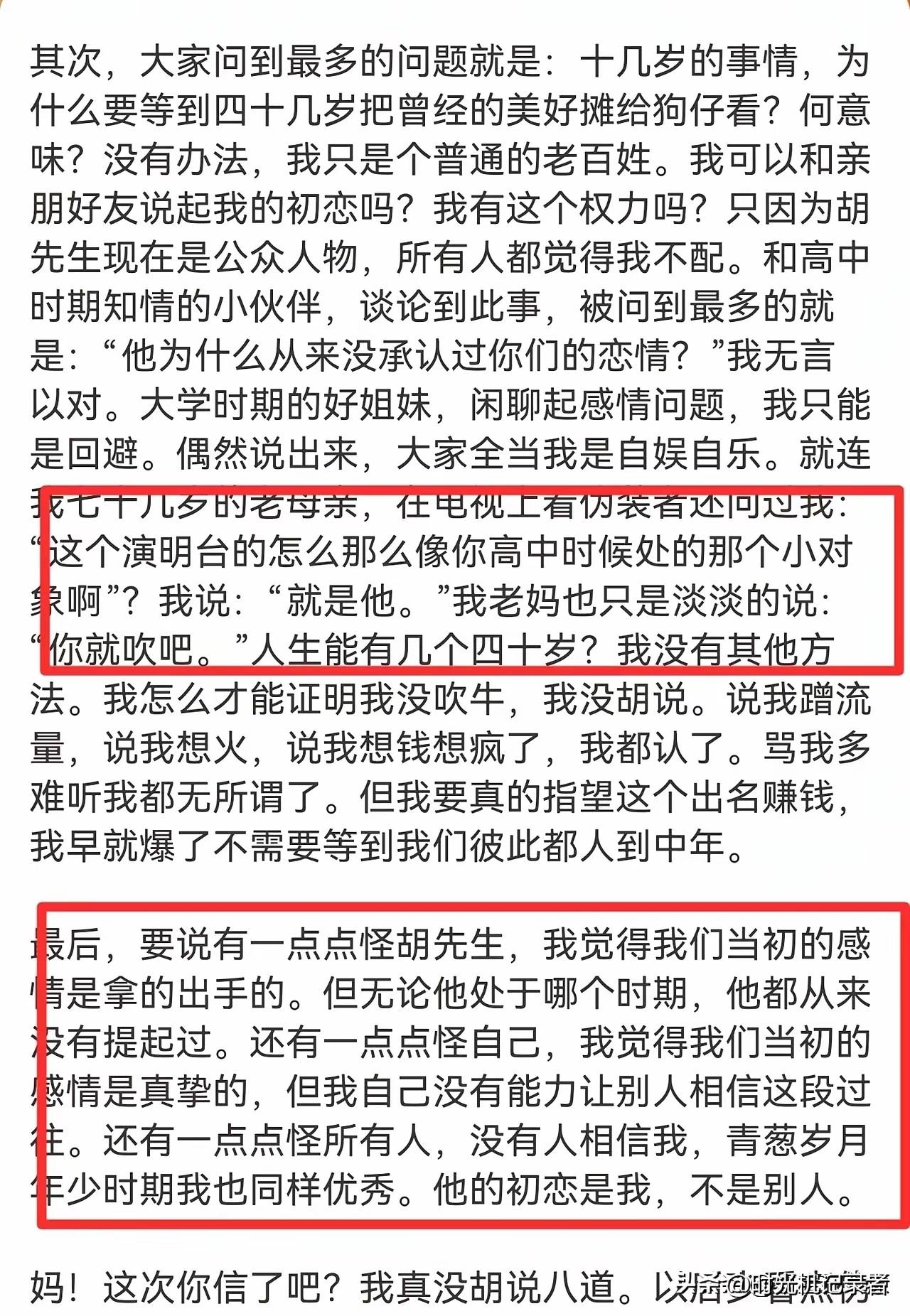 胡歌的初恋,怎么会有四十多岁坦然公开自己初恋的人,还是大明星。 最近看到有人说自己是胡歌初恋,感觉挺有趣,一直都说薛佳凝是胡歌初恋,如今冒出来个y女士,还把信件公开。 如果是真的,只能说胡歌那时只是少年懵懂,情窦初开时,字里行间不难看出,胡歌那时也是满满的正能量!这个女孩现在这么做,还是人品不行。