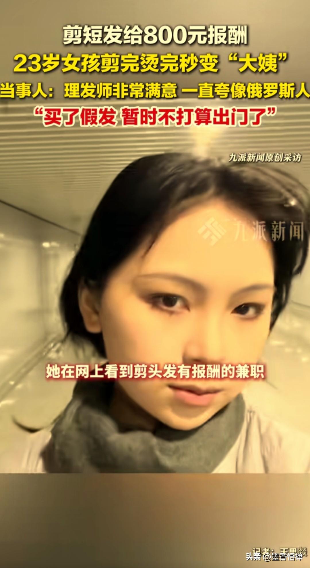 为了800元报酬,23岁女孩答应剪去长发,没想到8小时“改造”后,直接从年轻姑娘秒变“大姨”,当事人事后回应:买了假发,暂时不想出门了。 她在网上看到“剪短发给报酬”的兼职,一直想剪短发的她,想着换个发型还能赚钱,愉快的便答应了,提前约了时间过去。原本只是要剪短,没想到理发师却额外给她修剪、烫发、染发,折腾了整整8小时。 最终成品让她彻底懵了:黑长直变成橘色小卷毛,利落短发让她瞬间老了十几岁。更哭笑不得的是,理发师对造型非常满意,一直夸她“像俄罗斯人”。 网友们笑疯了: “800元买了个‘中年暴击’,这钱赚得太扎心了” “理发师的审美和普通人果然是两个世界” “这哪是剪头发,一下子少走30年弯路,从20岁变50岁了,这是直接换了个辈分啊。” 面对这个“意外”,女孩无奈买了假发,暂时不出门,等头发长长再调整。这件事也提醒大家:这类“剪发赚报酬”的兼职藏套路,别为了小钱牺牲形象与健康。 “这种‘剪发赚报酬’的兼职藏套路,别为了小钱毁了形象!如果你是她,会要这800元吗?”