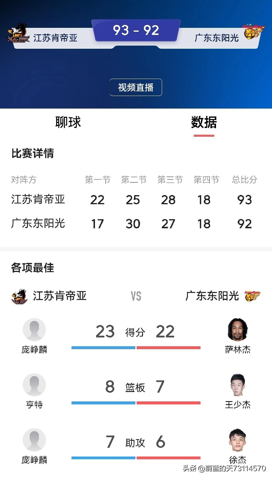 [玫瑰]CBA第28轮快讯:常规赛排名十九的江苏肯帝亚在主场以93-92击败排名