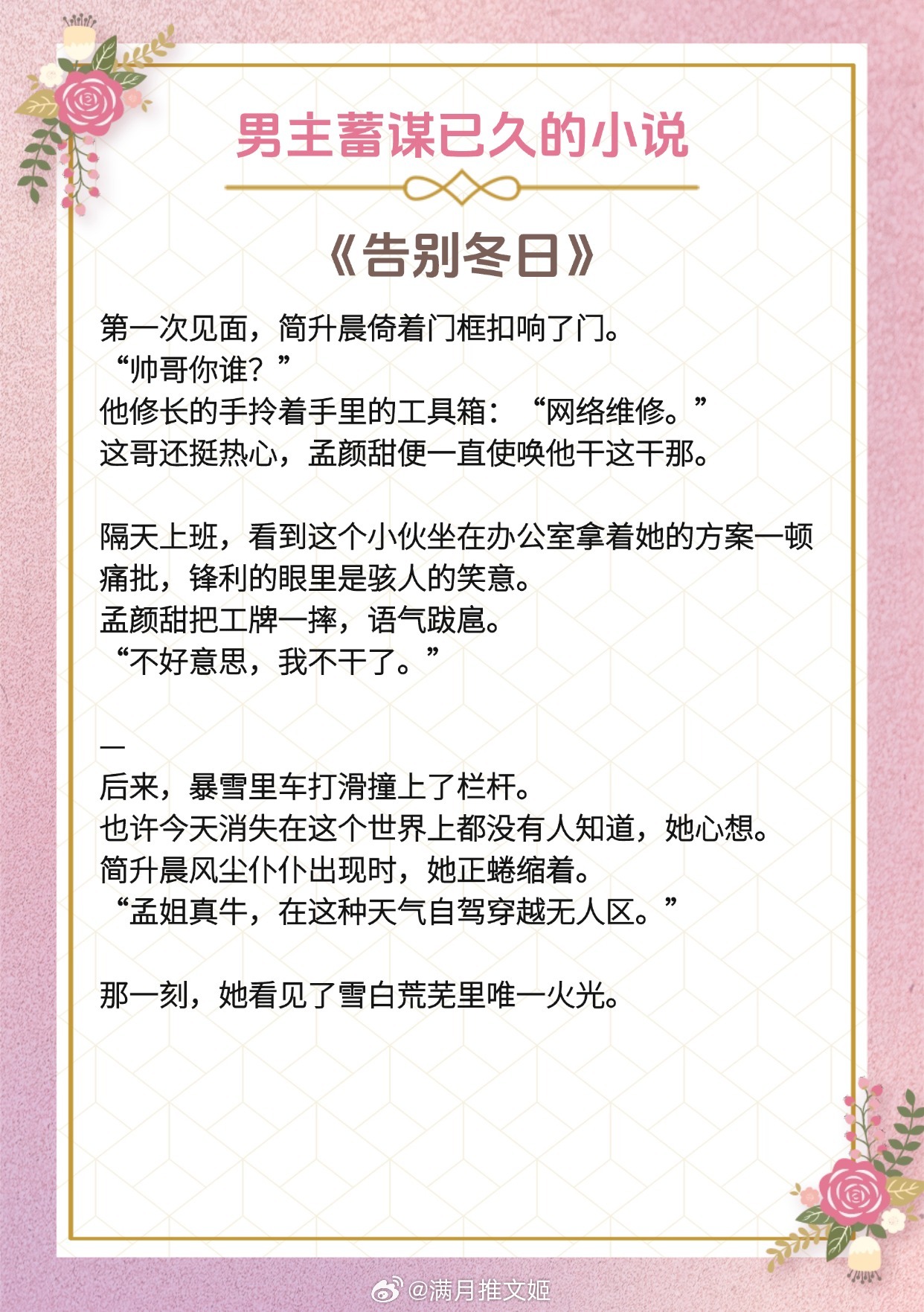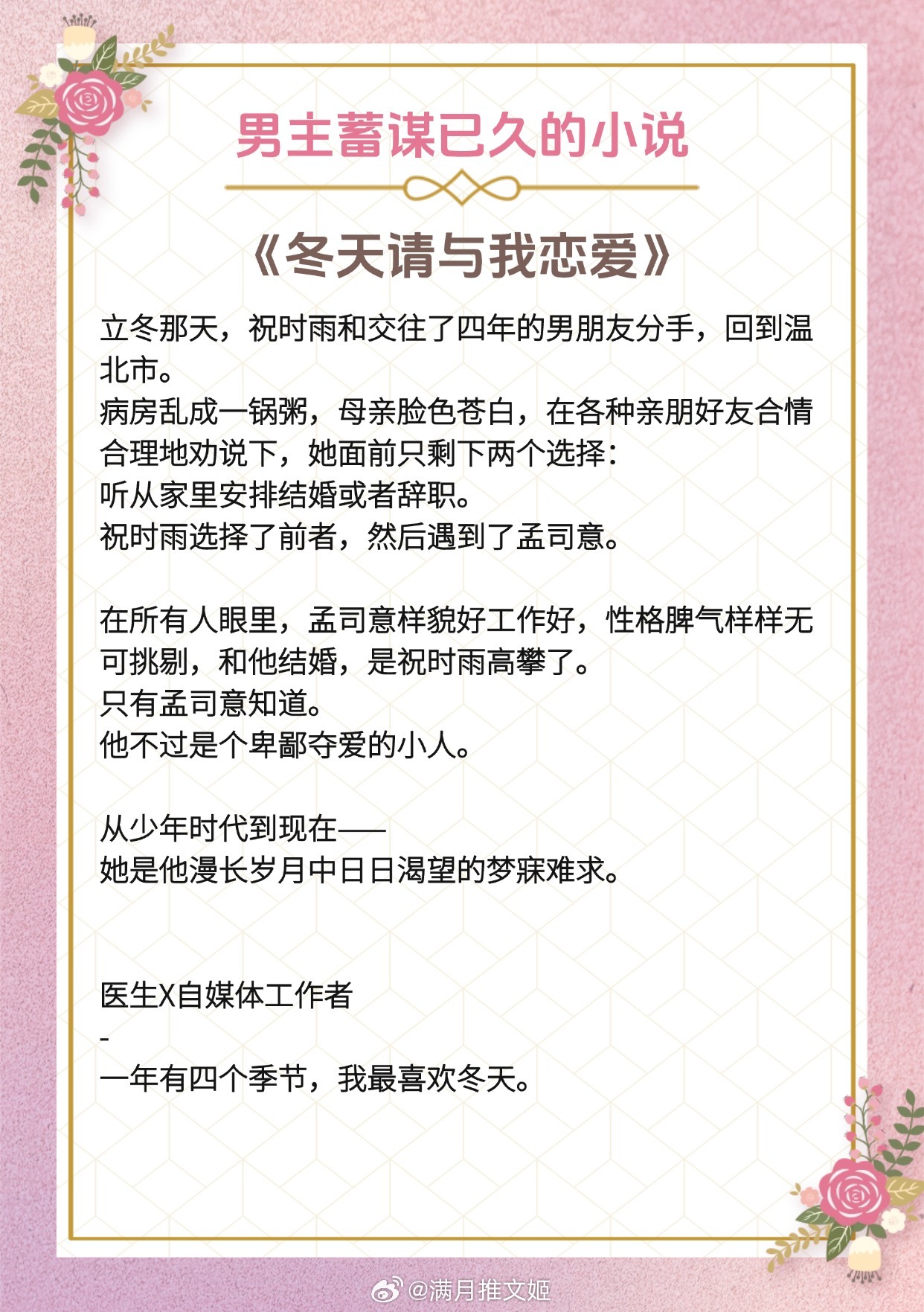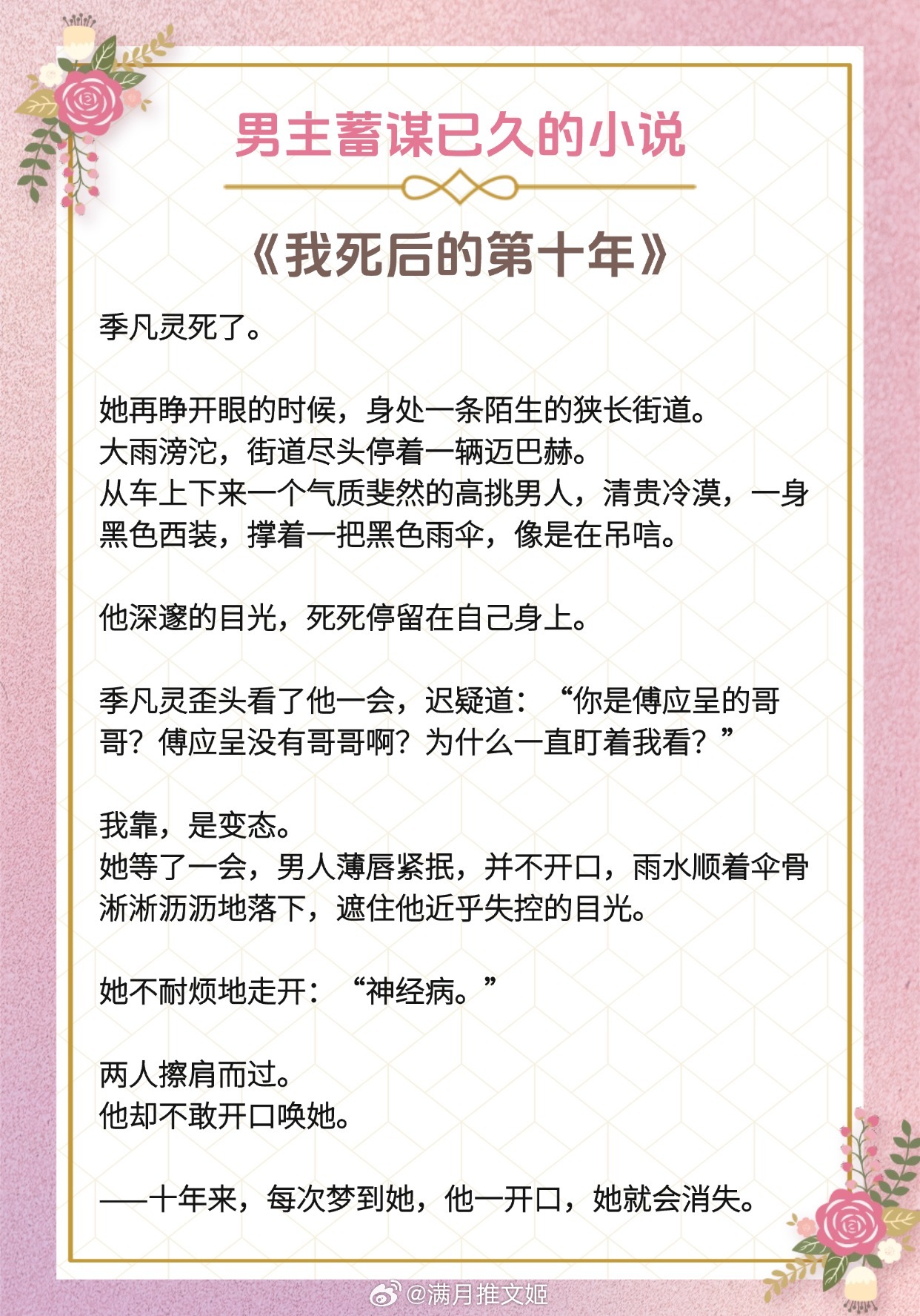 《我死后的第十年》作者:云炽《温柔狙击》作者:时星草《只此烟火里》作者:柠芝《冬天请与我恋爱》作者:江小绿《一城秋色》作者:词树《告别冬日》作者:与秋池推文言情小说推荐推文