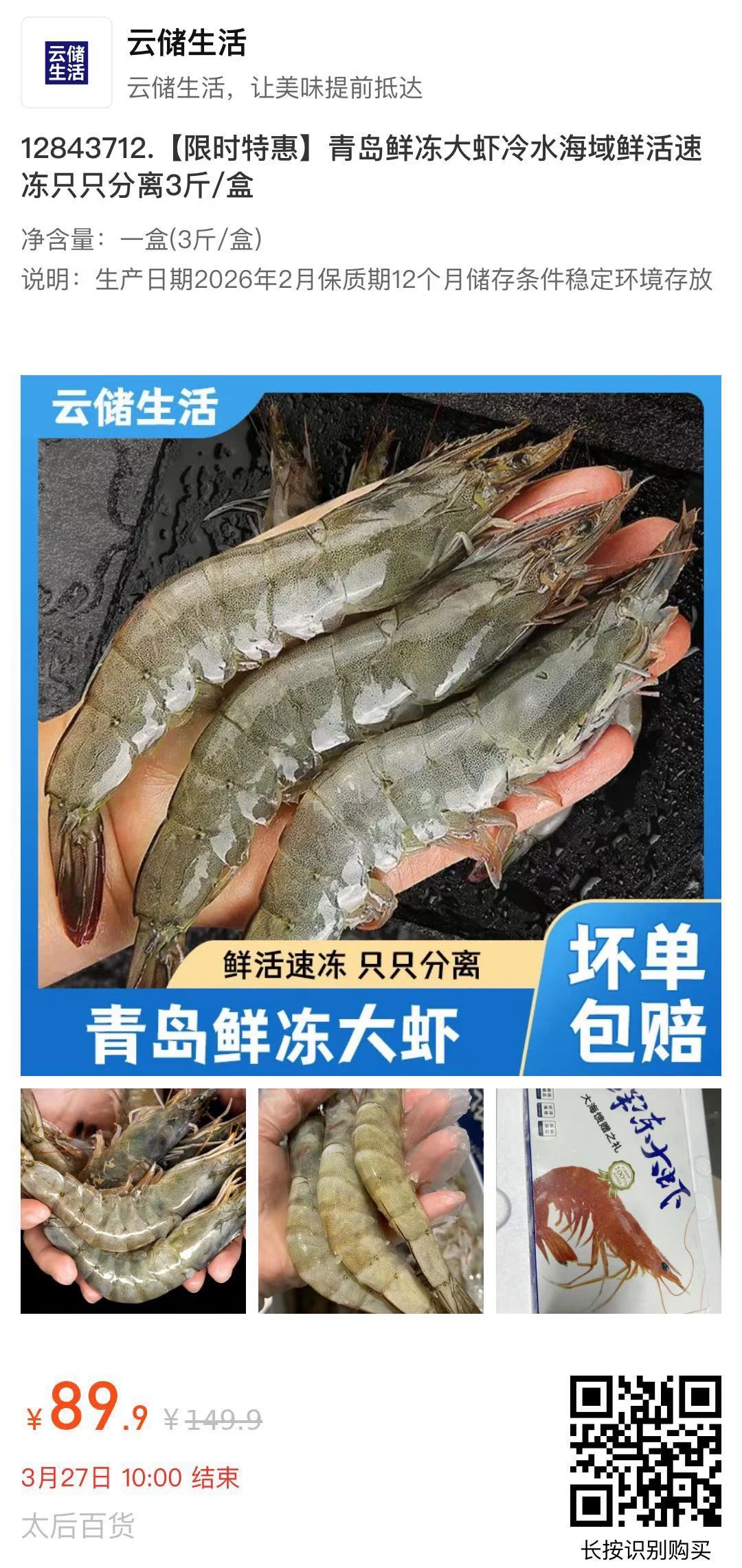 1. 💰59.9 美丽德训鞋(红色的这款真的怎么搭配都好看!春夏加州valley girl搭配!2. 💰49.9 软底勃肯鞋 一脚蹬 懒人穿搭3. 💰99.9 到手6盒总共30根爆汁锋味派烤肠(我之前买的一模一样的129只有三盒www 这个真的很划算!4. 💰399 YSL黑鸦片(有效期至2027年6月)我最爱的香水没有之一5. 💰399 YSL反转巴黎(有效期至2027年2月)香水届两大花旦6. 💰89.9到手三斤青岛大虾(鲜活冷冻)(比山姆划算!)7. 💰59.9 挪威冰鲜三文鱼8. 💰99全场任选2件 ABC kids童鞋春夏第一次专场大清仓9. 💰99网红星星小童防风防水(尺码80-130)
