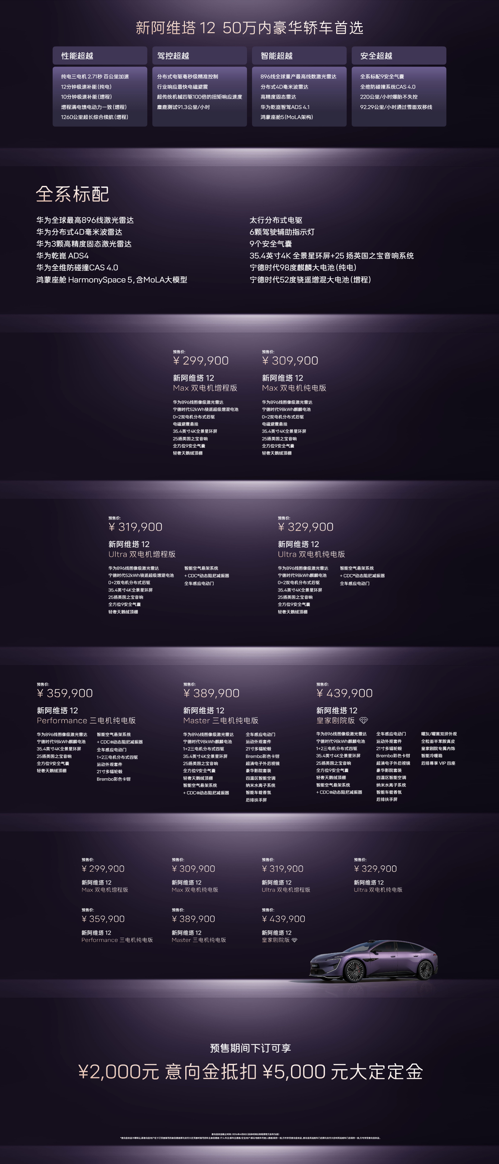 拿着放大镜看新阿维塔12的升级配置,发现全是“狠活”!智能首选不用多说,华为首款896线激光雷达,这精度简直是给车装了“显微眼”。加上太行智控2.0技术升级,搭载分布式电驱和超跑同款电磁避震,安全和速度激情两手抓 ,新阿维塔12把“技术流”和“实用派”完美融合了。这次连按键细节都兼顾到,车内增加多处按键,一键就能直达指令,这才是最懂开车人的设计!(纯电版)电池也更新为宁德时代麒麟6C,超快充技术不能更高效。预售价29.99万起,看完之后才发现50万内豪华轿车首选 不是一句口号,这就是事实描述啊!新阿维塔12预售 太行更安全 新阿维塔12搭载乾崑新四激光方案