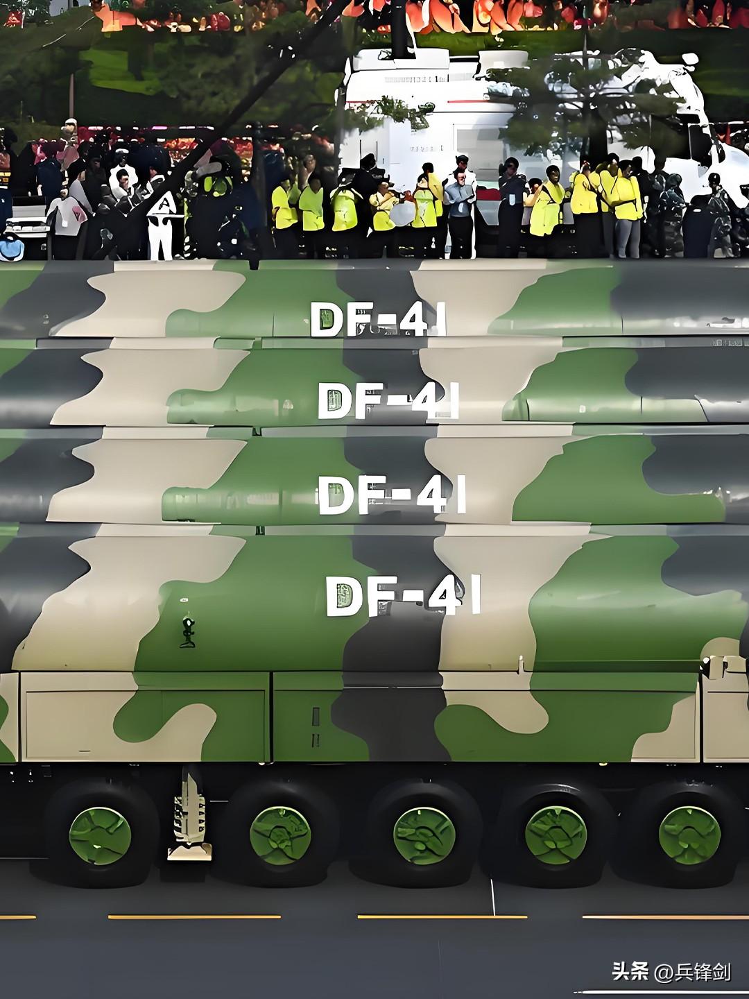 - 41:大国战略的“定海神针”东风 - 41洲际弹道导弹,宛如中国战略核力量的巍峨巨擘,是维护国家安全的“定海神针”。它于1984年正式立项,历经科研人员数十年攻坚克难,终于在2019年国庆70周年阅兵式上震撼登场,向世界彰显中国强大的战略威慑力。 东风 - 41性能傲视群雄。其射程超过12000公里,部分推测甚至可达14000公里以上,这意味着从中国本土发射,能轻松覆盖全球绝大多数战略目标,让任何潜在对手都不敢轻举妄动。它飞行速度高达25马赫,约8500米每秒,16分钟便可抵达伦敦,半小时内能精准命中全球任一角落。 在突防能力上,东风 - 41堪称“鬼魅”。飞行途中可灵活机动变轨,还能释放诱饵弹,让先进防空系统“眼花缭乱”、难以拦截。它既能携带6 - 10枚分导式核弹头,每个威力达35 - 60万吨TNT当量,也可搭载一枚550万吨TNT当量的单弹头,威力远超广岛原子弹。 东风 - 41具备公路、铁路机动发射和固定井发射能力,灵活性与生存能力兼备,是中国战略制衡、慑控、决胜的关键力量。