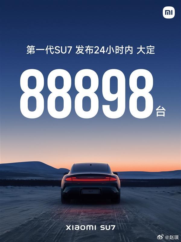 虽然第一代SU7没有公布过锁单情况,但是大家可以参考下24小时大定,88898台。 小米汽车回应为何不公布大定数字