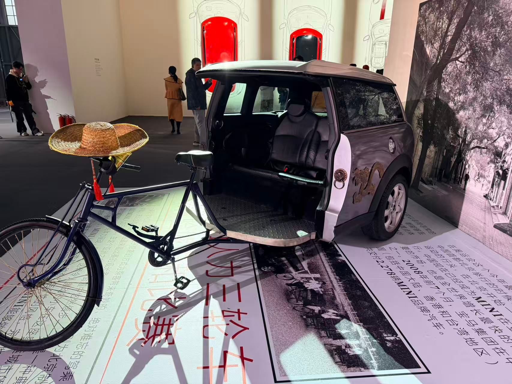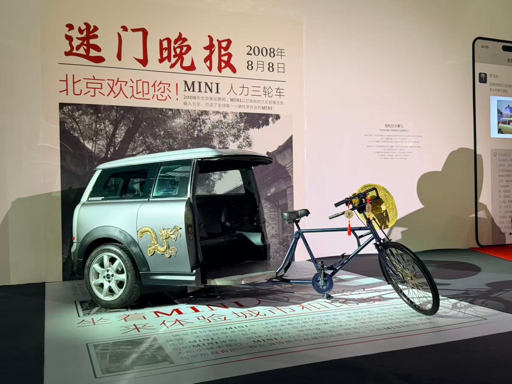 这台“车”给我看乐了,2008年北京奥运限定MINI人力三轮车!🐲龙纹+门环+草帽,把英伦小车玩成胡同里的老北京风情,零排放还自带复古气场!MINI总有好故事MINI