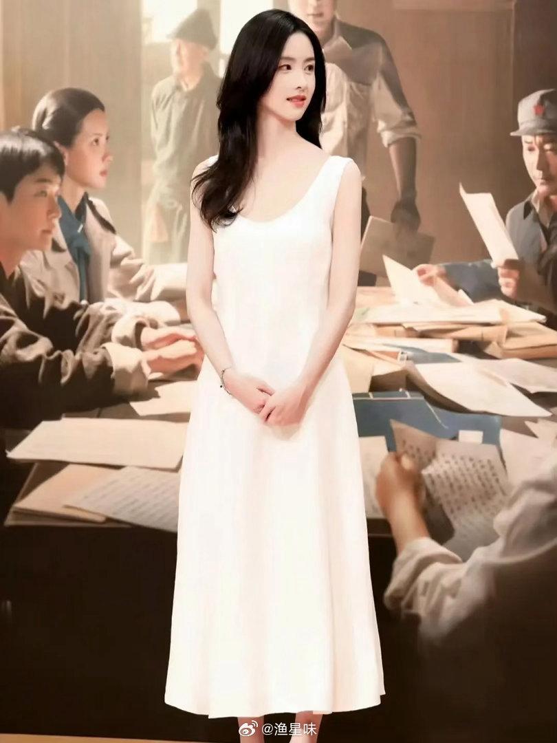汽车发布会我推荐陈女士打扮成这种风格干净的妆容,微卷的披发,简单干练的白裙毒毛同