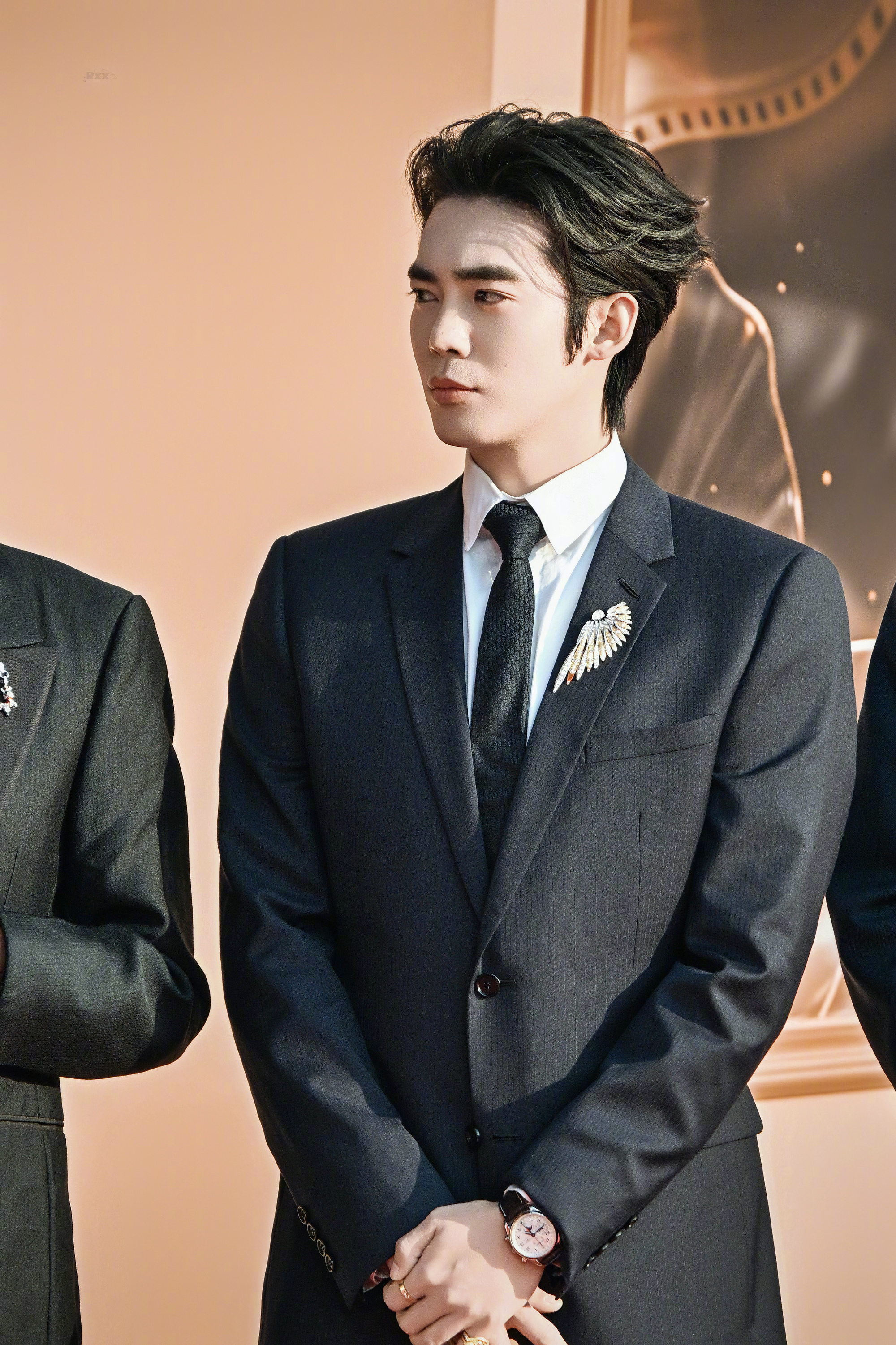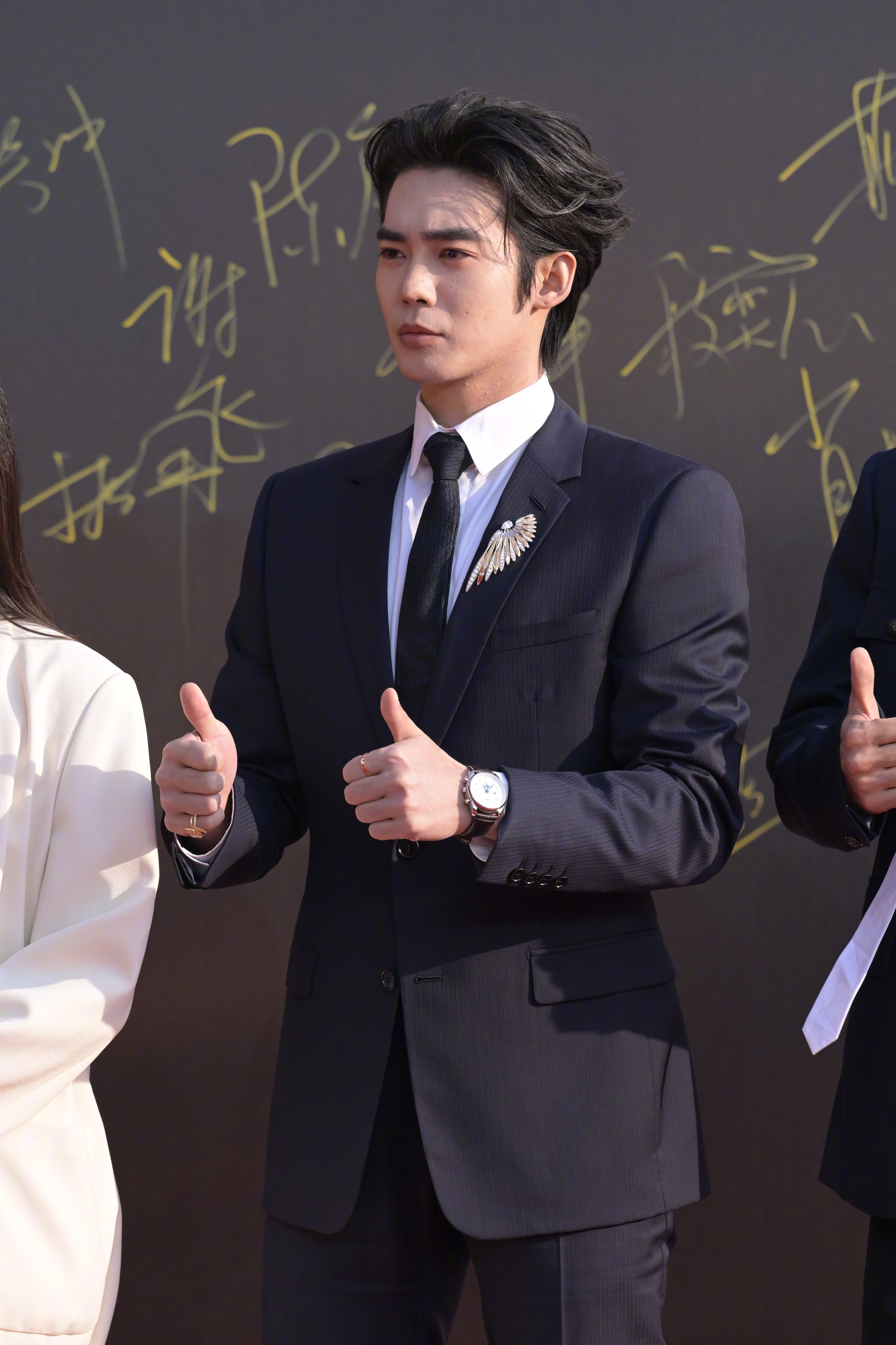 于适 今日 CMG中国电影盛典 红毯,简洁的Dior西装,华美的Chaumet高珠,再加上浪琴表点缀,三奢的典礼“标配”,再次以主持人身份亮相。📸 这枚Un Air de Chaumet长空曼舞高定珠宝套系Plumes d'Or金羽流光主题可转换冠冕,尽展羽翼丰盈流动之姿,巧作胸针佩戴,勾勒俊朗身姿。L’Épi de Blé麦穗系列戒指撷取丰收自然意象,璀璨金辉流转指间,仿若麦浪轻拂,彰显绅士温润矜贵的不凡气度。