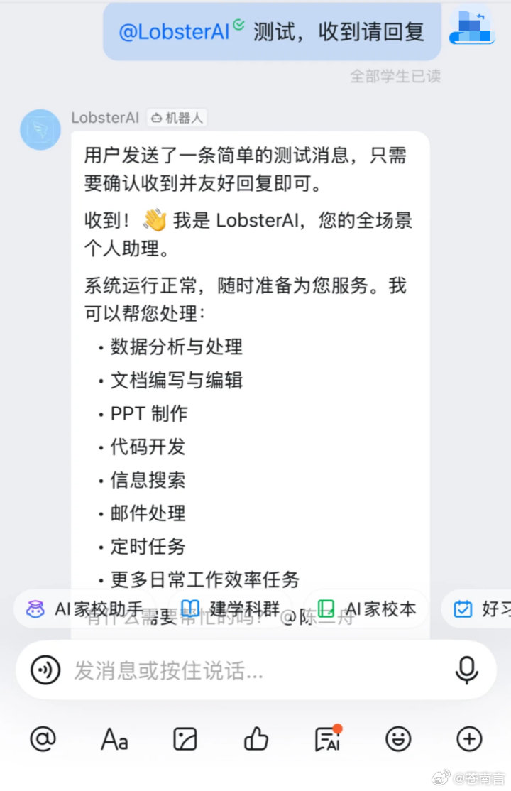 它还能接入我们日常办公用的钉钉、飞书这些工具,帮你整理文件、总结内容、写周报、整理发票....各种繁琐的手动活儿都能搞定,直接省了超多麻烦。